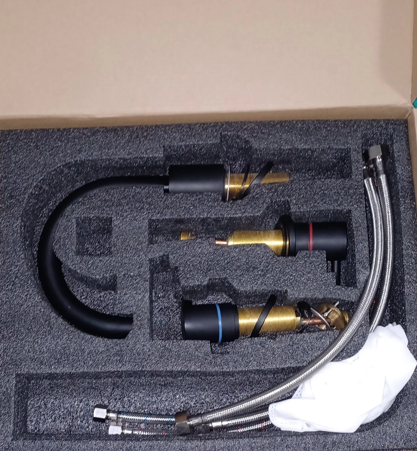 New in box, never installed. High quality. includes all parts and instructions. Matte black brass finish. Modern style.