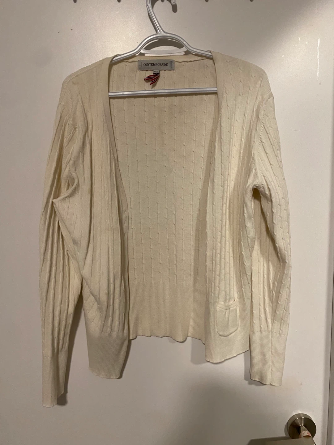 Contemporaine Cream Cable Knit Cardigan - L