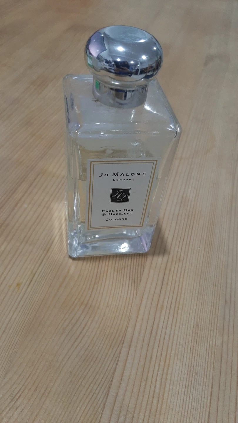 This is Jo Malone London English Oak & Hazelnut Cologne. The bottle is clear glass with a silver cap. It's a 100ml bottle.