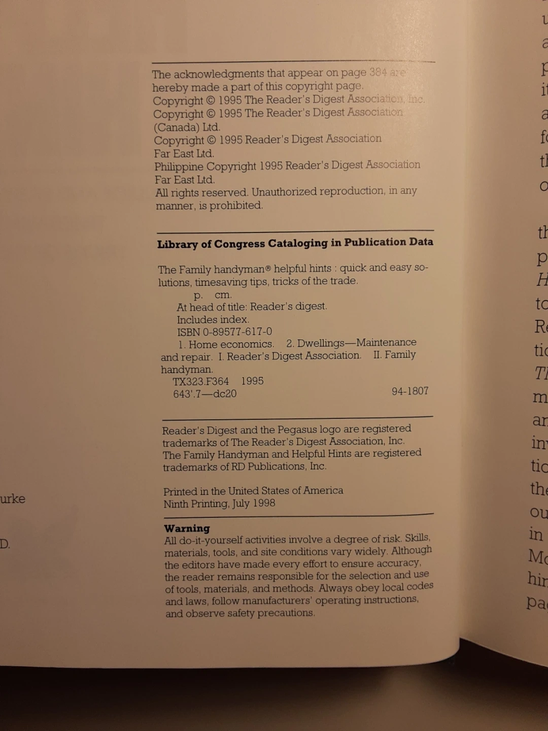 This Reader's Digest book offers quick & easy solutions and time-saving tips from the trade. It's filled with practical advice and helpful hints for home repairs and projects.