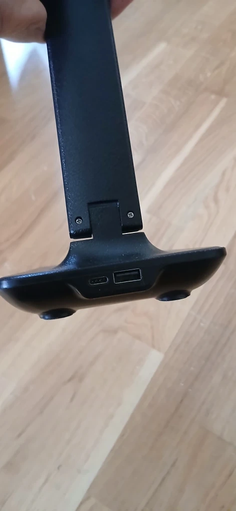 This is a black LED desk lamp. It's adjustable and has touch controls on the base. It features two USB ports to connect to the wall (it'snot wireless, needs to be plugged in).
