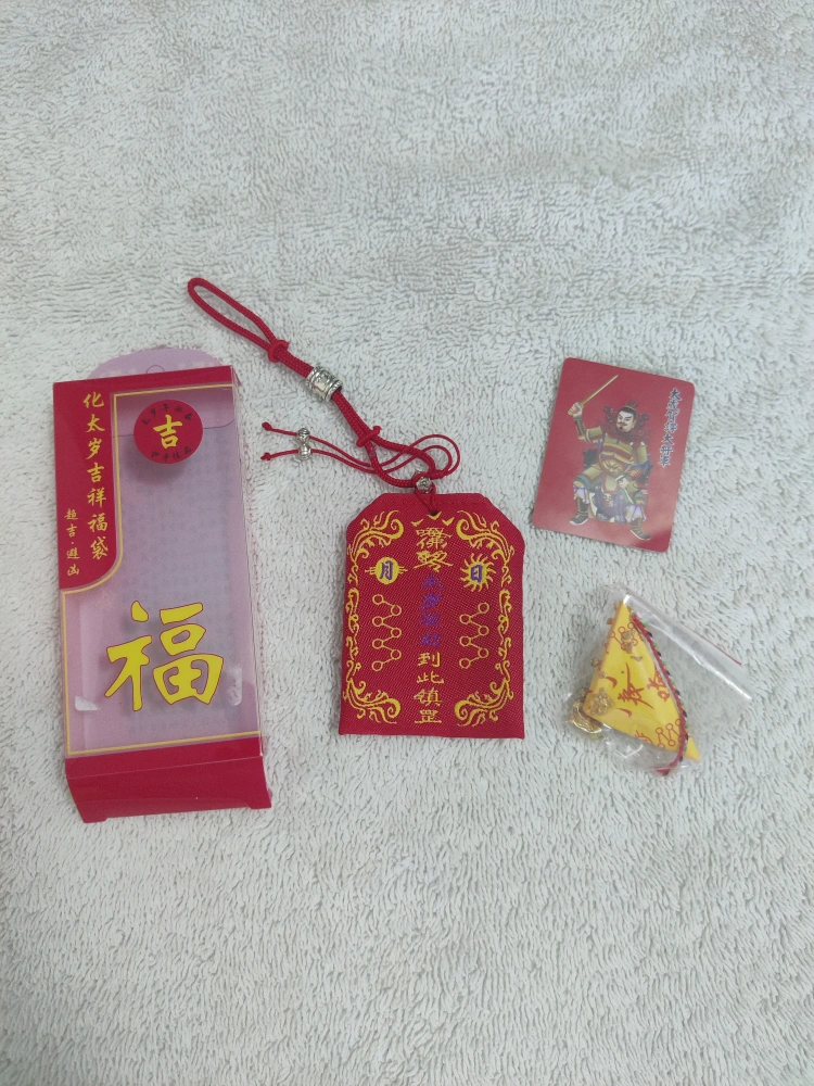 Auspicious amulet in original packaging. Includes all components shown in the photos. Perfect for bringing good fortune!