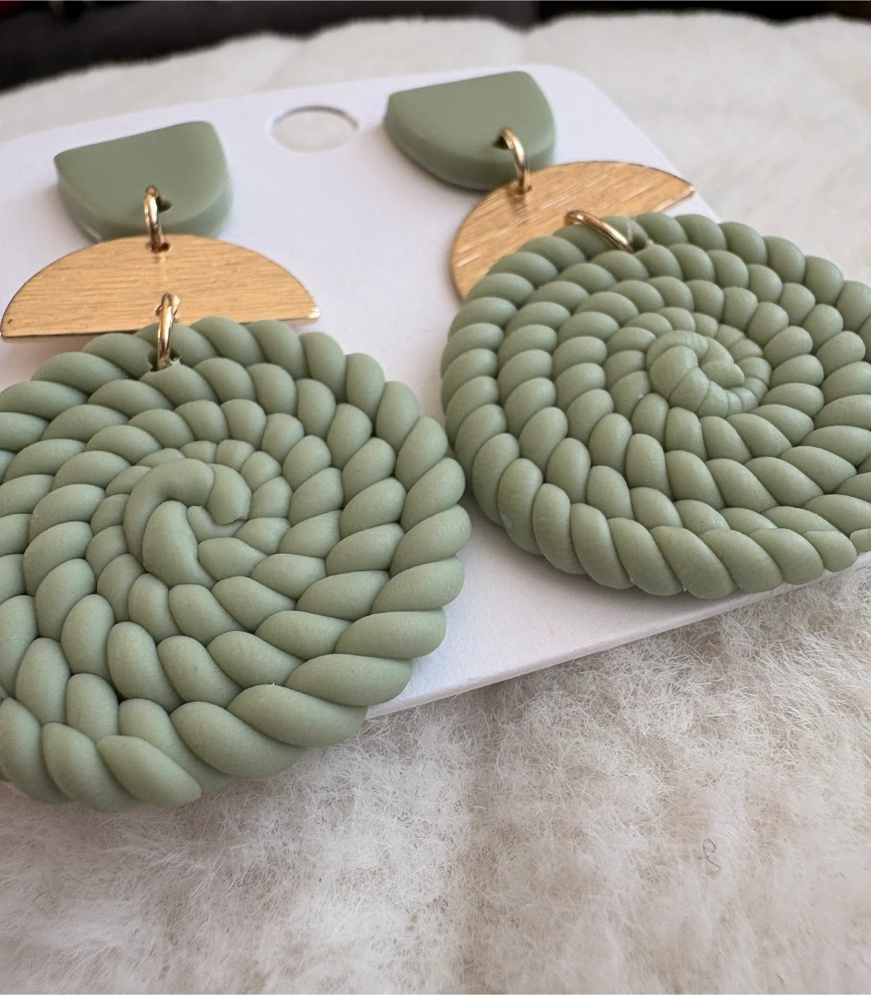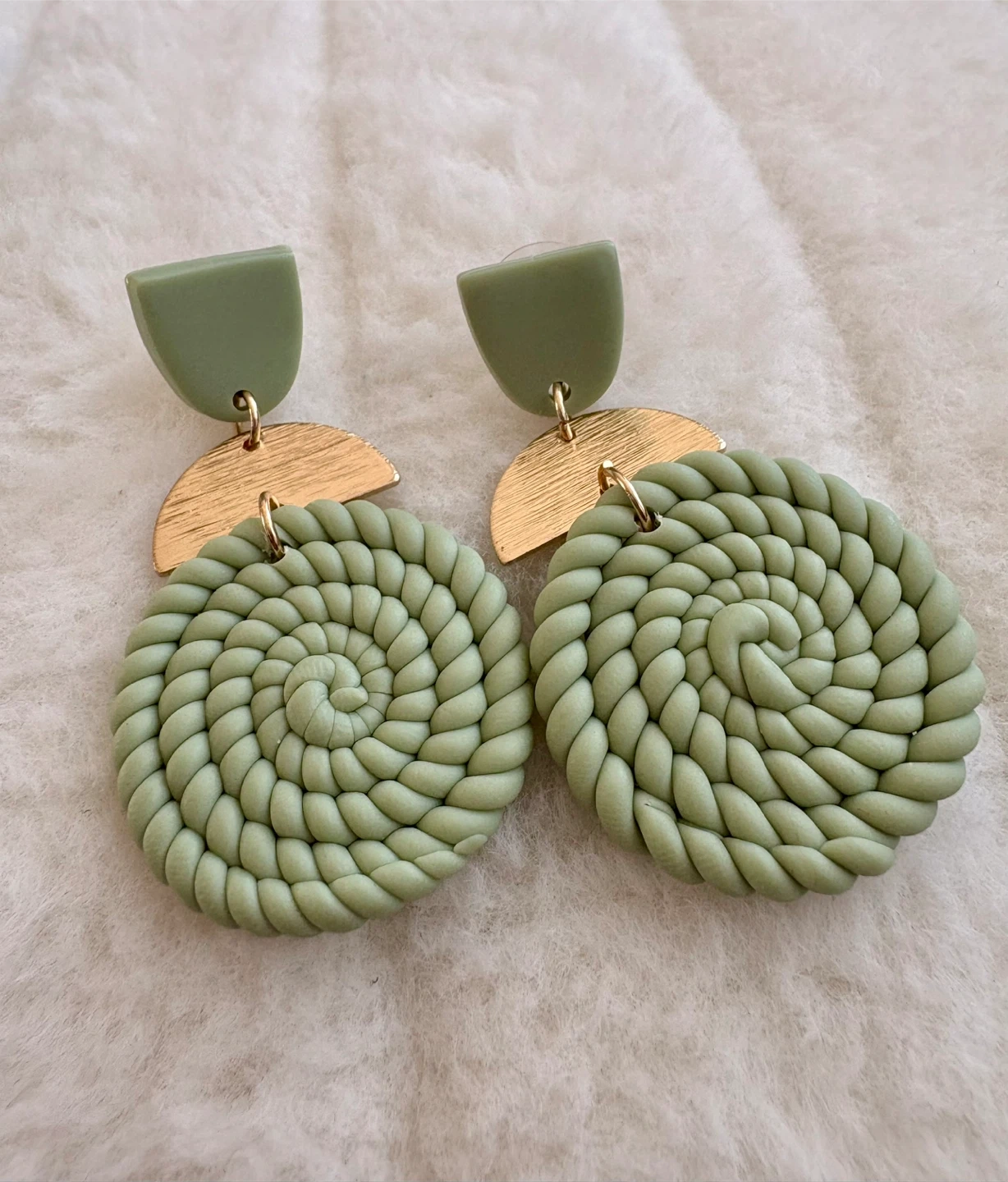 Sage Green Clay Twisted Earrings with Gold Accents
