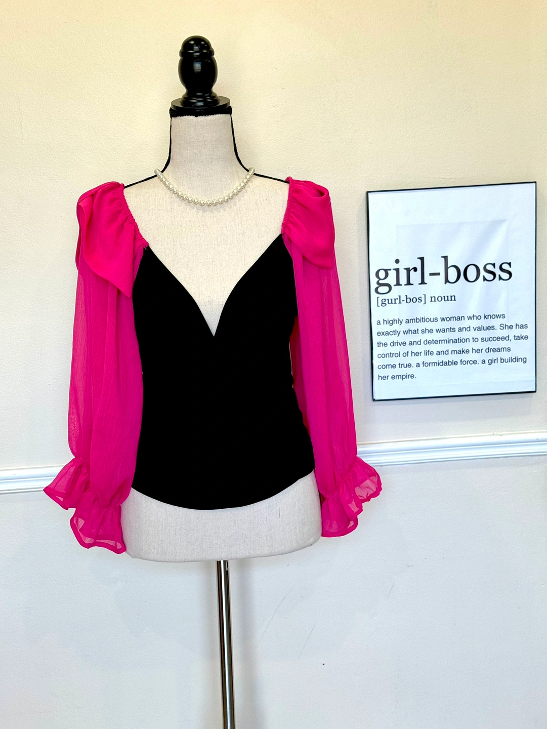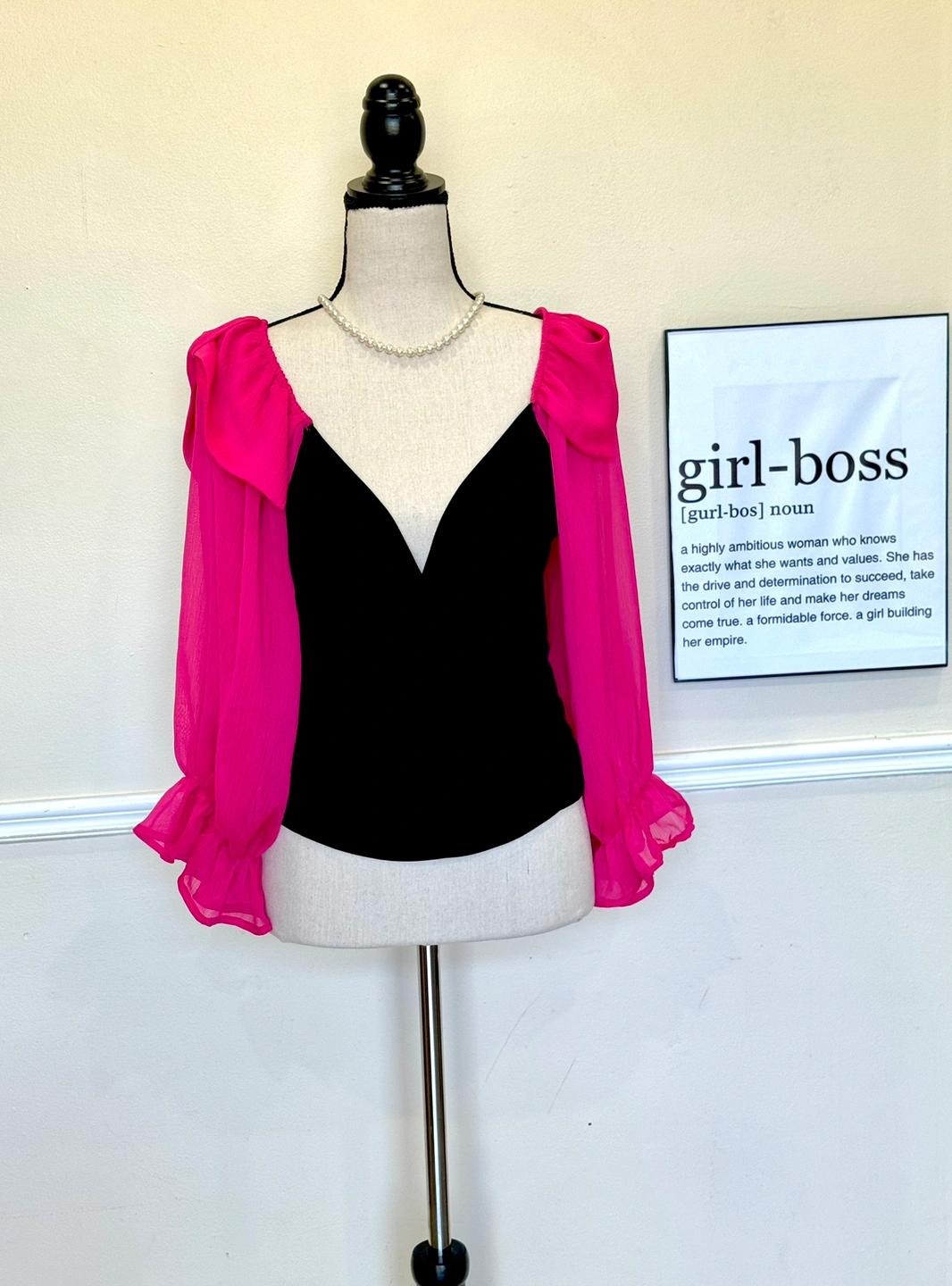 Black Velvet Top with Pink Sleeves