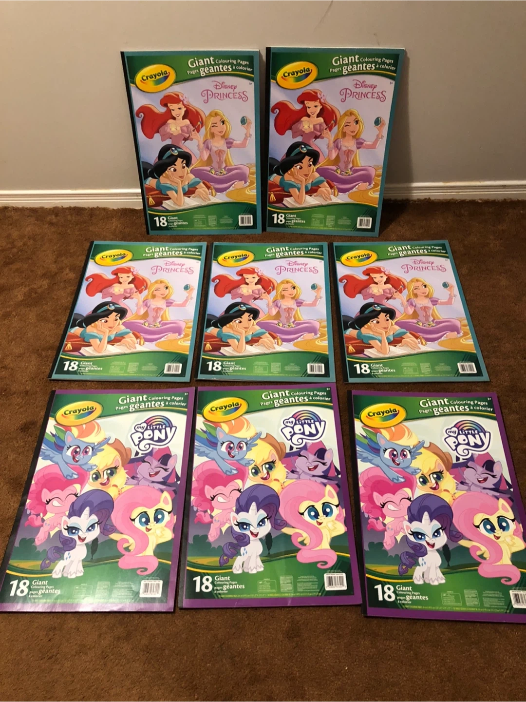 I have a collection of Crayola Giant Colouring Pages $4 each. There are both Disney Princess and My Little Pony themed books available. Each book has 18 giant pages for hours of colouring fun!