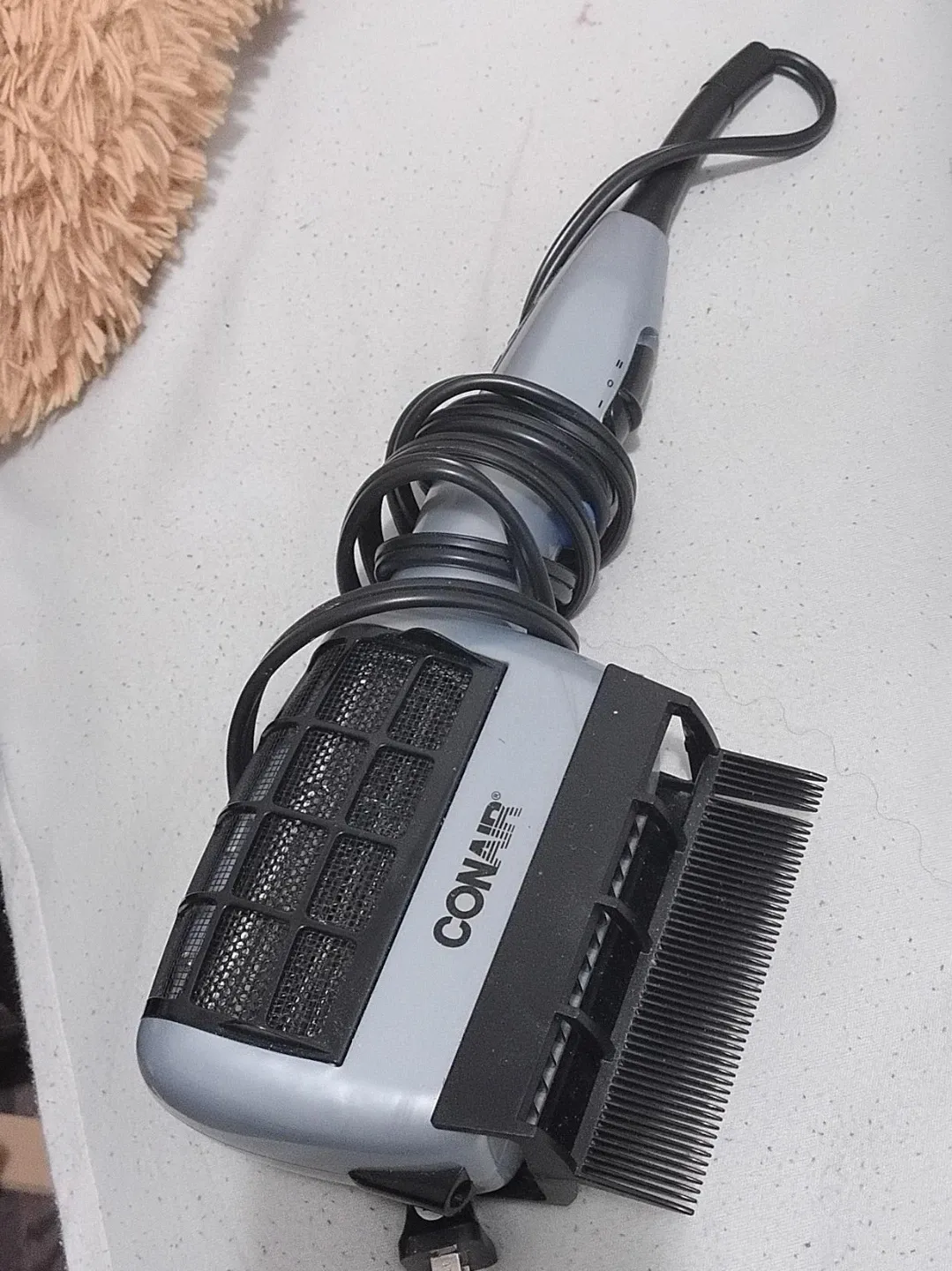 This is a Conair hair styler comb attachment. It's grey and black. This attachment is designed to work with certain Conair hair dryers.