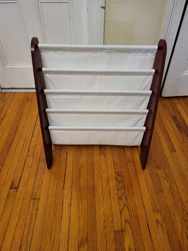 Premium book shelf for kids rooms with four deep pockets. Toddler sling book rack with deep sleeves, nursery bookcase organizer. Smoke-free condition: Very Good.