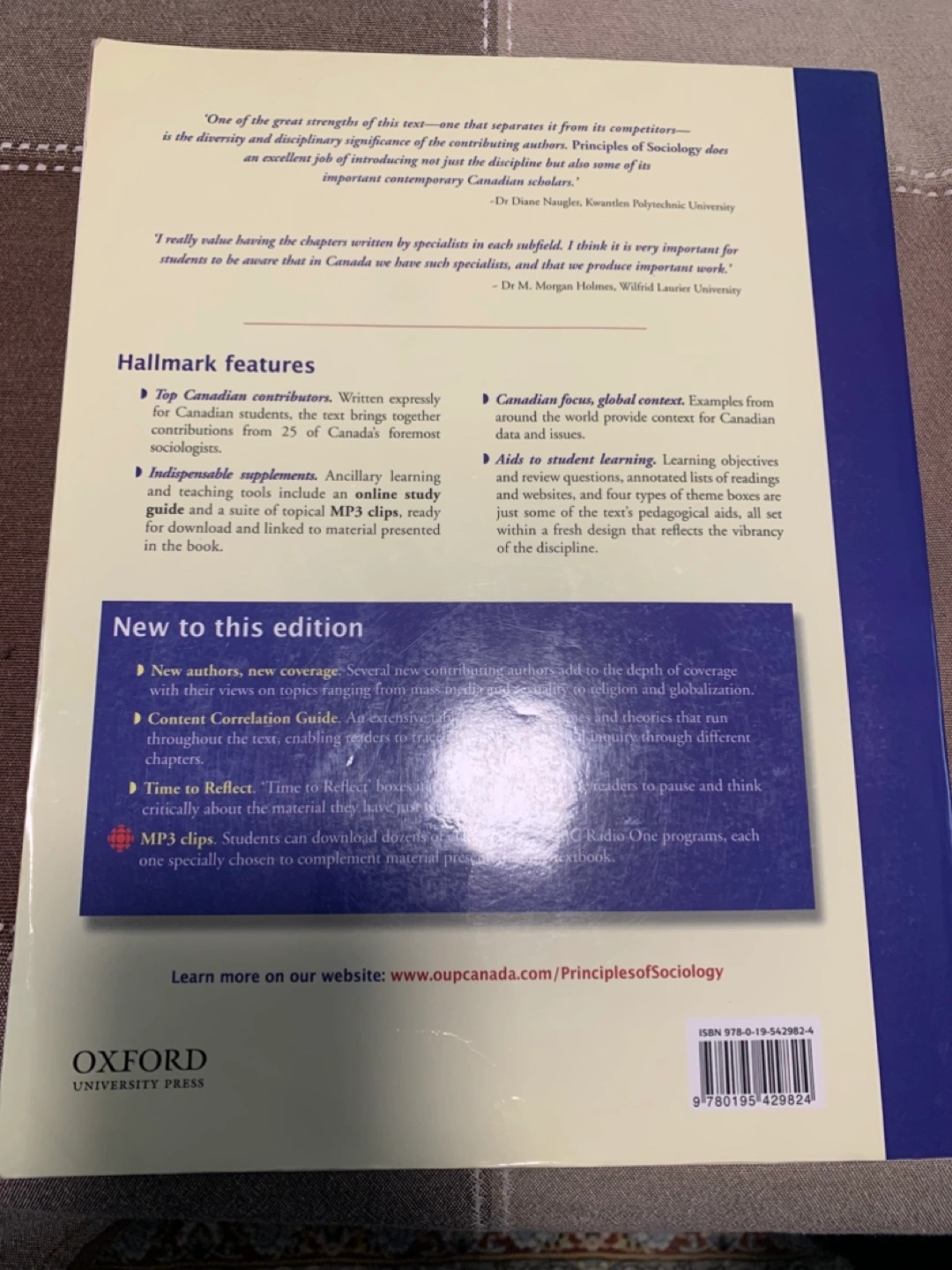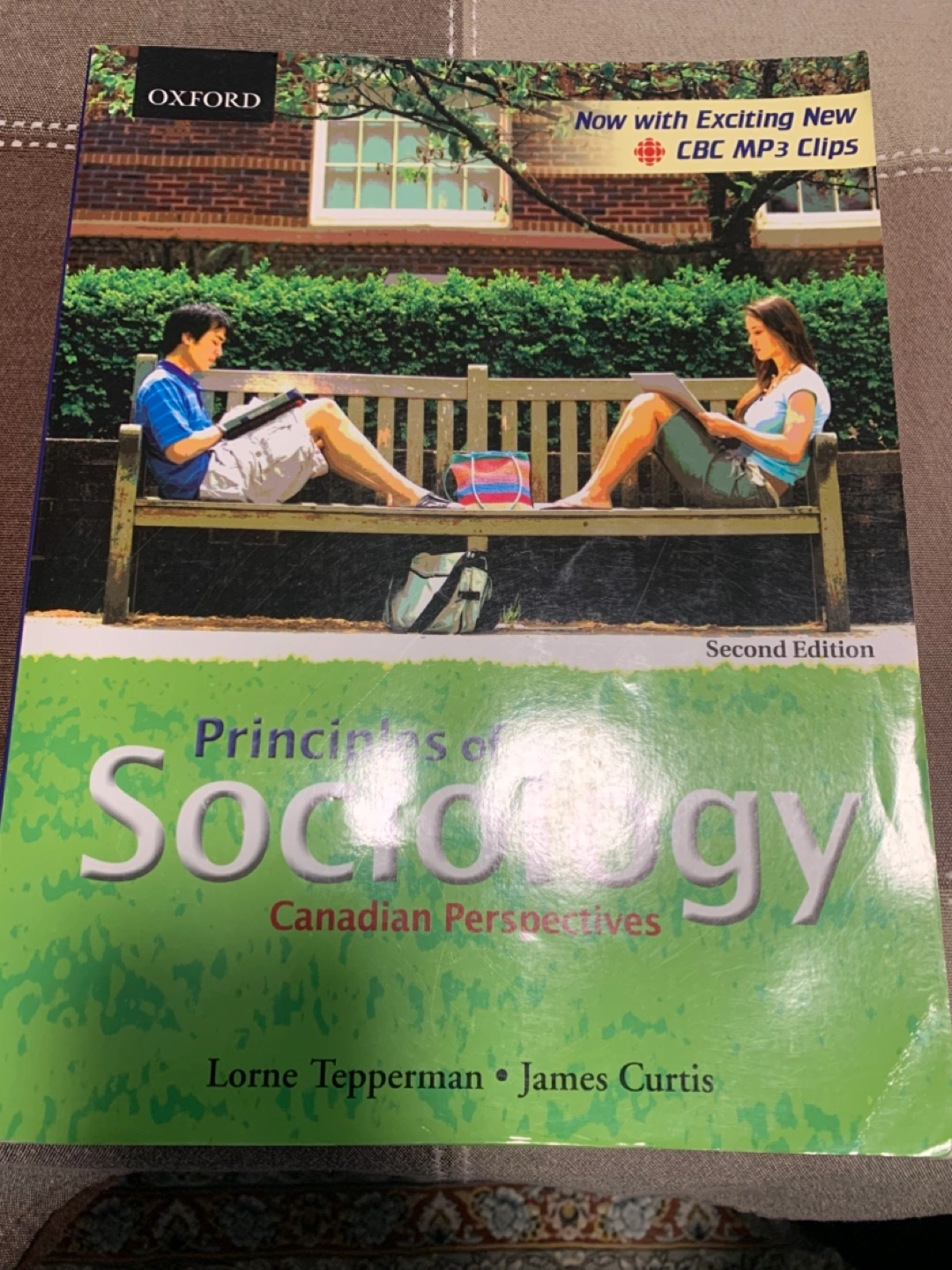 Second edition textbook. Canadian perspectives. Includes supplementary material online. Authors: Lorne Tepperman and James Curtis. Oxford University Press.