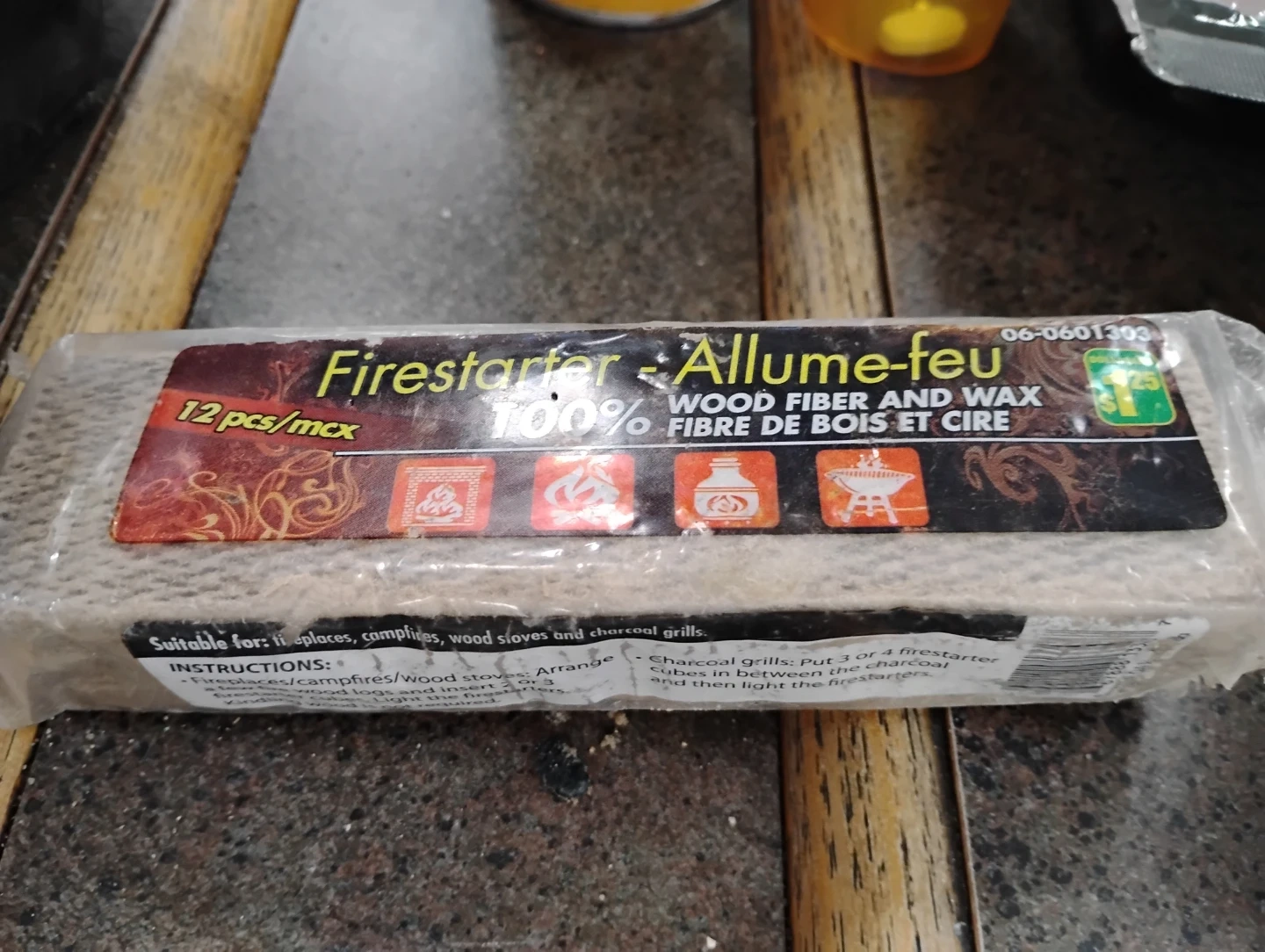 This package contains 12 wood fiber and wax firestarters. They're suitable for fireplaces, campfires, wood stoves, and charcoal grills. Each firestarter is made from 100% wood fiber and wax.