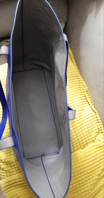 Large blue tote bag with grey straps and lining. Minor wear on the bottom corner. Colour is more of a royal blue.