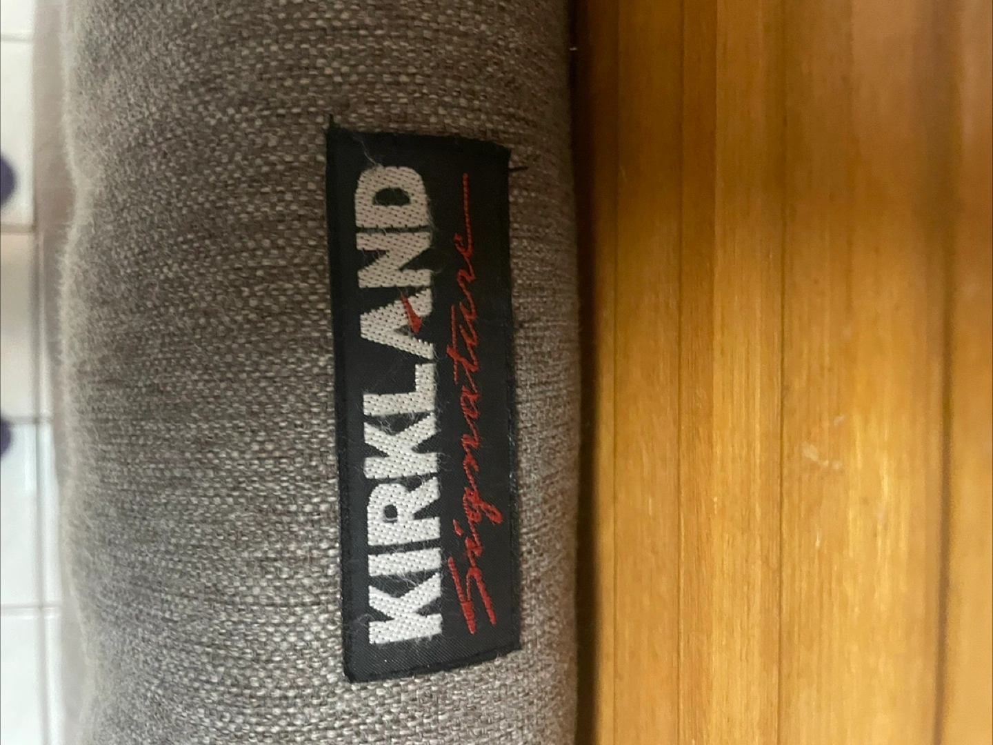 Selling a Kirkland Signature extra large pet bed. It's grey and beige. It is in good condition and ready for a new furry friend to enjoy! The bed had been deep cleaned and is ready for use immediately!