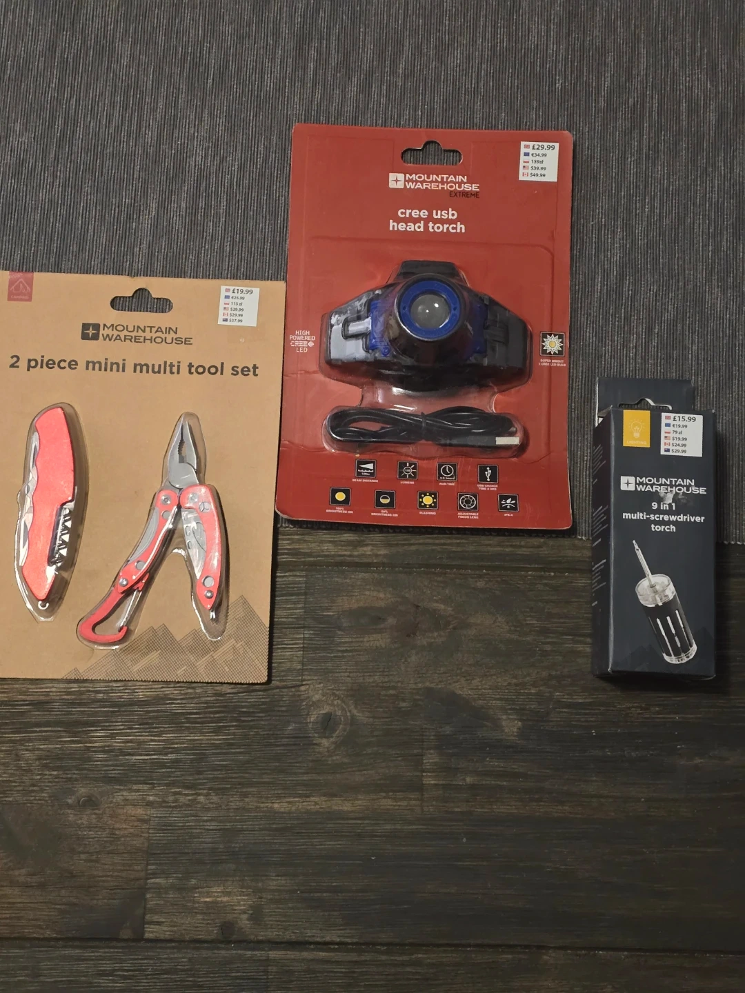 This Mountain Warehouse torch is a 9 in 1 multi-screwdriver tool. It's great for various small tasks and repairs. It's powered by batteries and includes multiple screwdriver bits. Also a head lamp and a multi tool.
