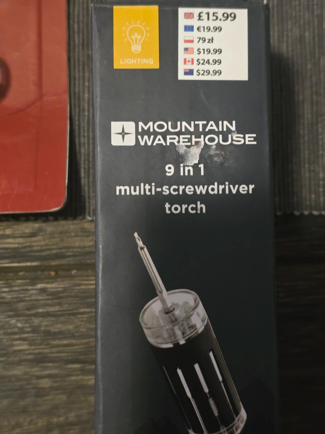 This Mountain Warehouse torch is a 9 in 1 multi-screwdriver tool. It's great for various small tasks and repairs. It's powered by batteries and includes multiple screwdriver bits. Also a head lamp and a multi tool.
