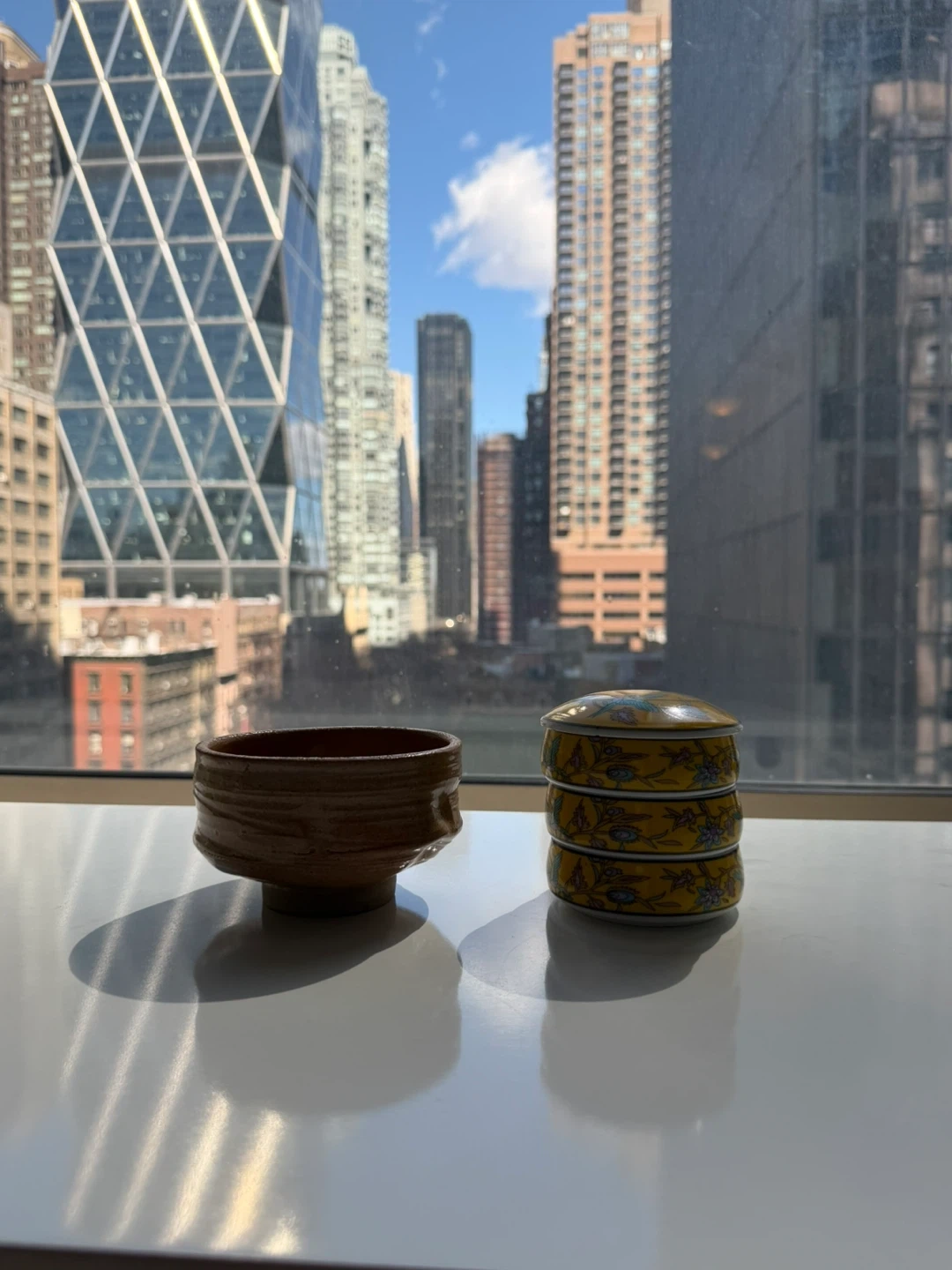 Yellow Ceramic Trinket Boxes with Floral Design - stackable
