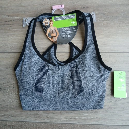 NEW Athletics Works Large Woman Sports Bra Gray and Black