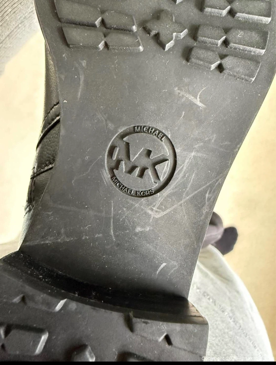 Stylish black knee-high boots from Michael Kors. Features a combination of leather and fabric upper with a durable rubber outsole. These boots are size 6.5.