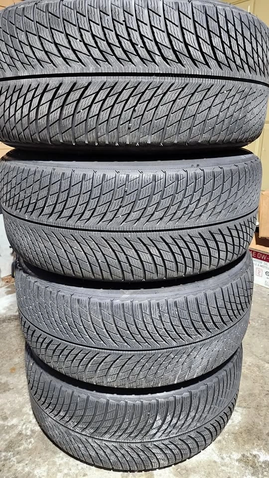 Selling four 20-inch Michelin Pilot Alpin 5 SUV winter tires for $800. Tires only, no rims. Two tires have 85% tread remaining, the other two have 80%. Tires have no patches or repairs. The tire size is 275/45/20, similar to sizes 255/50/20, 265/50/20, and 285/45/20. These may fit vehicles like the Acura MDX, Audi Q7, BMW X5/X6, Land Rover, Porsche Cayenne, Tesla Model X, VW Touareg, Volvo XC90, or others. Please verify fitment for your vehicle.
