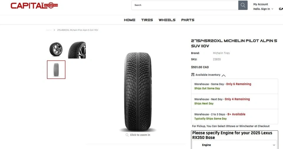 275/45/20 Michelin Pilot Alpin 5 SUV Winter Tires