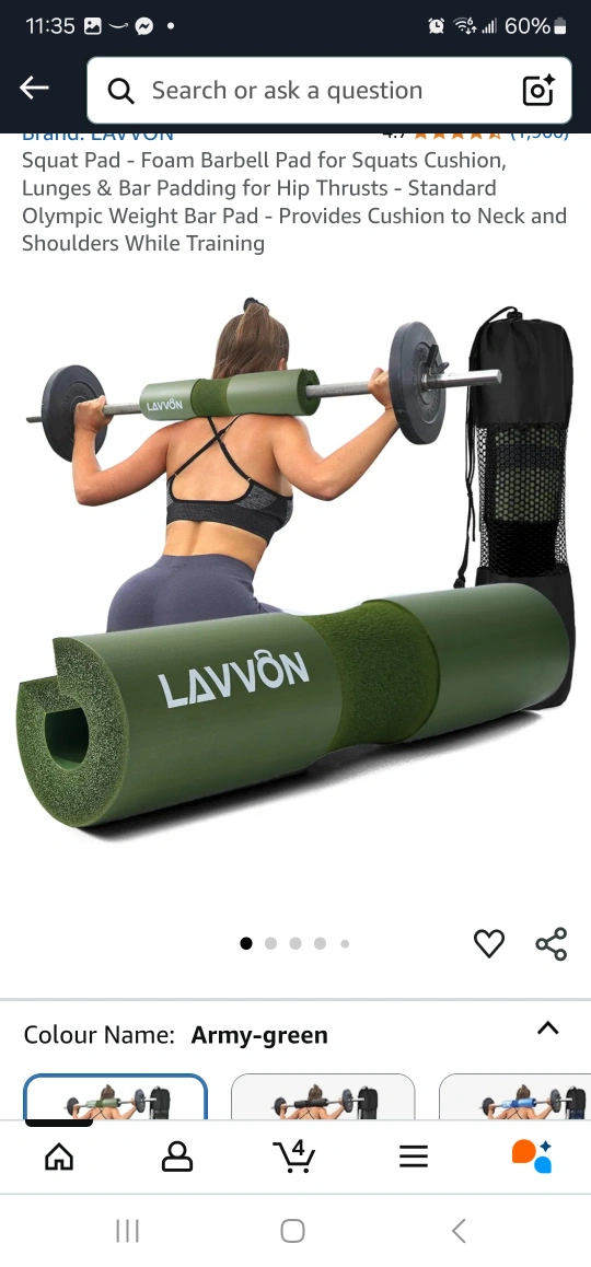 I have a LAVVON barbell squat pad for sale in army green! It's a foam barbell pad designed for squats, lunges, and hip thrusts. It provides cushion to the neck and shoulders while training. Comes with a bag for storage.