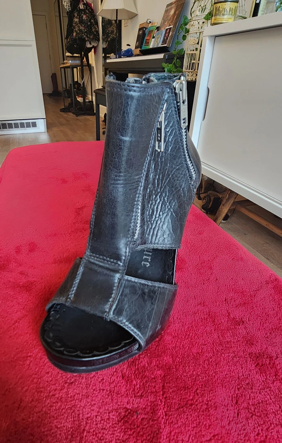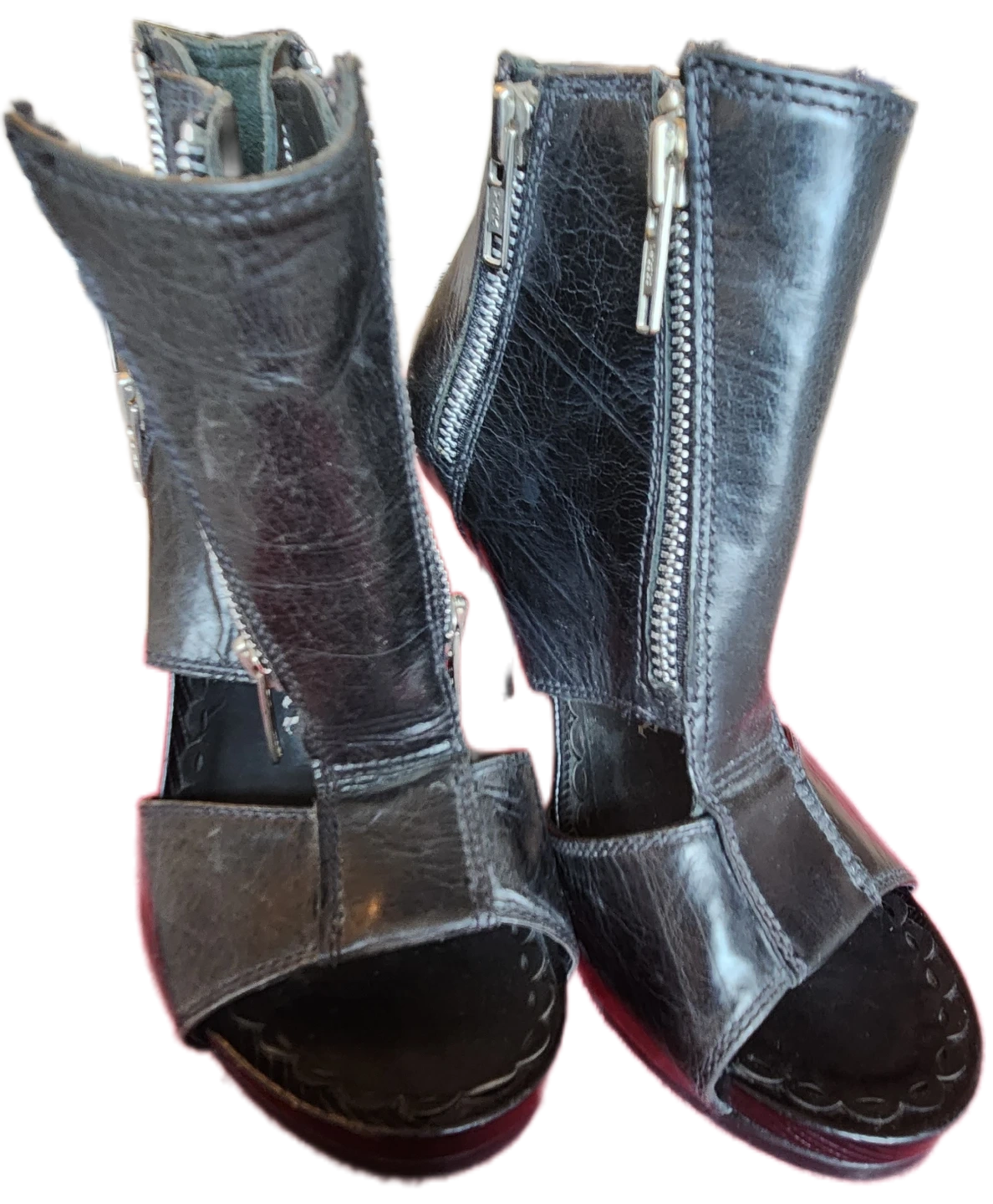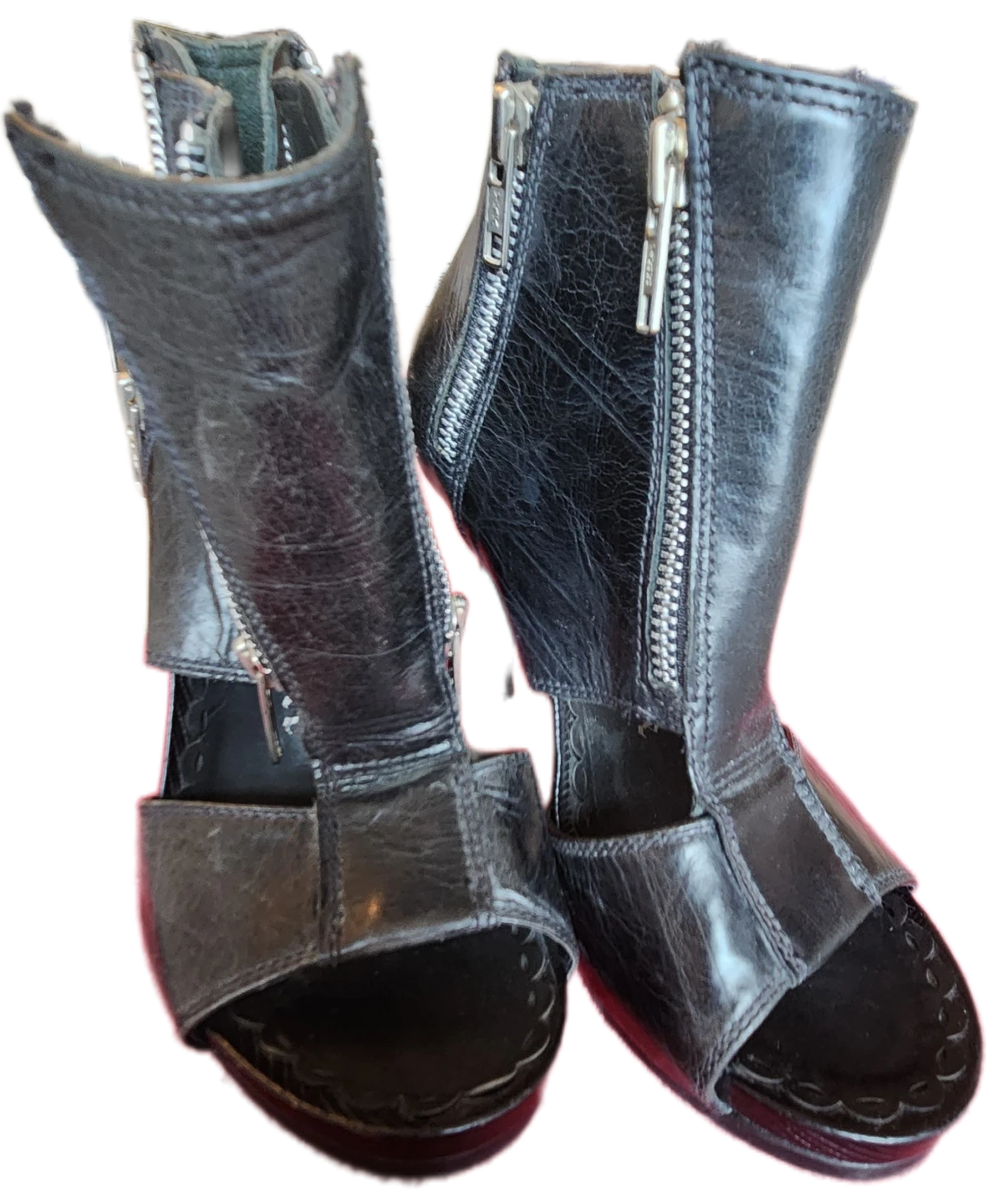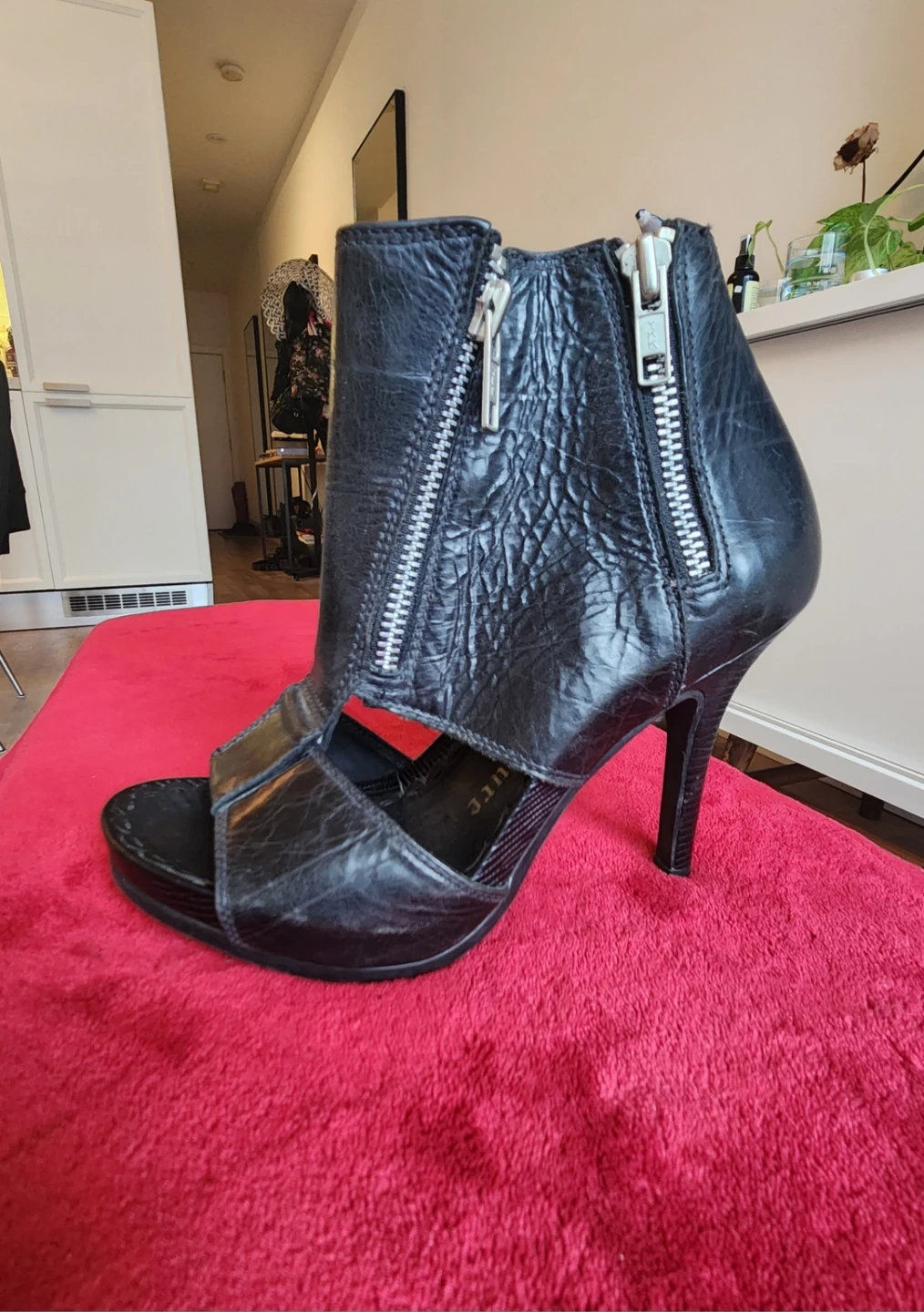 Juicy Couture Black Leather Peep-Toe Zipper Boots