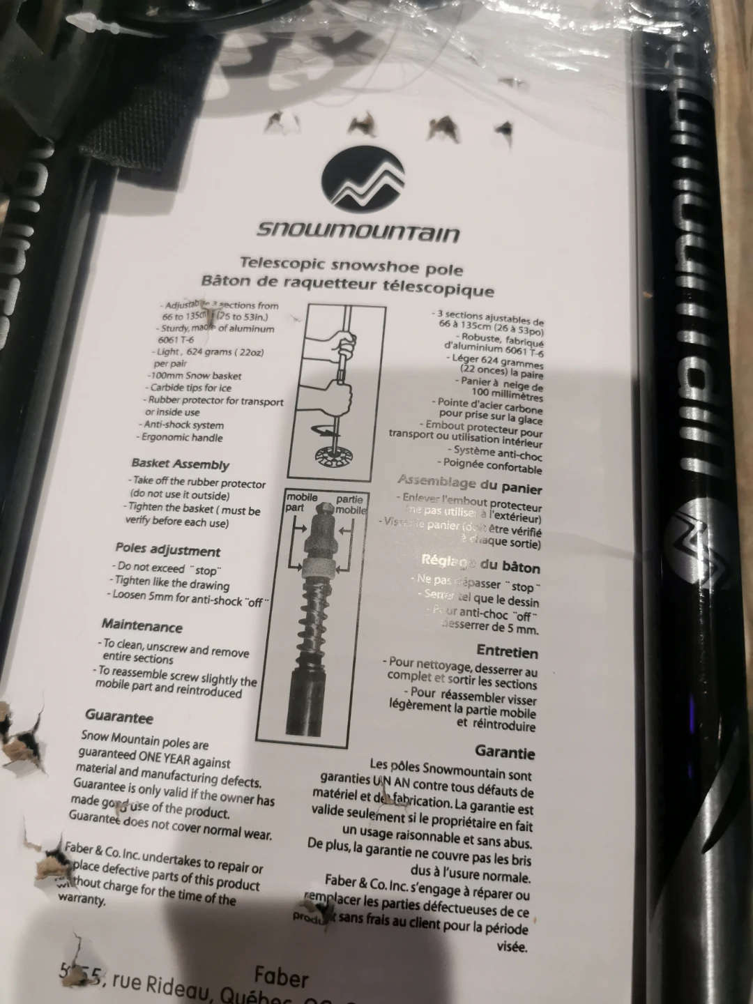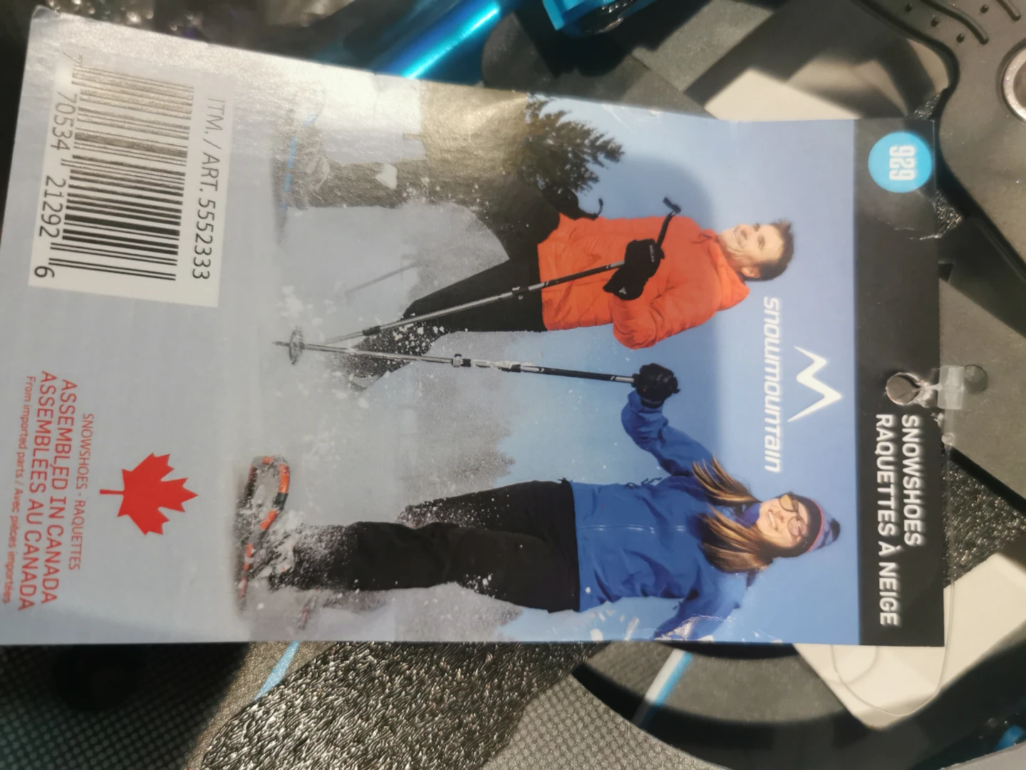 This is a set of Snow Mountain snowshoes, size 929, and trekking poles. They are assembled in Canada. This set is great for winter hiking and snowshoeing adventures!