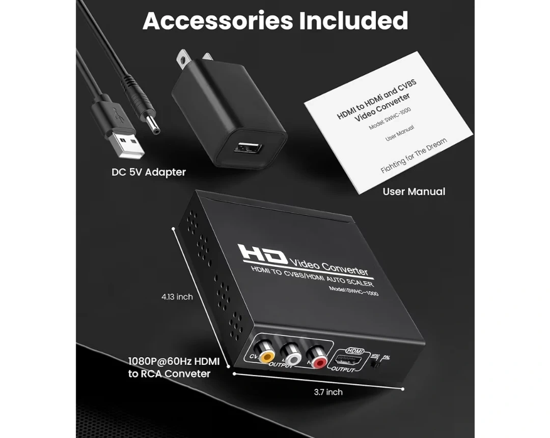 PLUG&PLAY - Built-in IC chip, the HDMI to HDMI + RCA/AV converter box Converts digital signals to composite analog signals,No need Install driver. With brand new and strong Metal shell, Nice appearance and has a good heat dissipation.