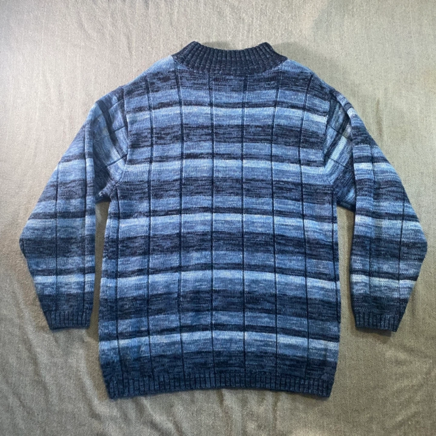 Vintage Southpole men's sweater in a blue striped pattern. It's a size medium and made from a knit material. This pullover is great for cooler weather!