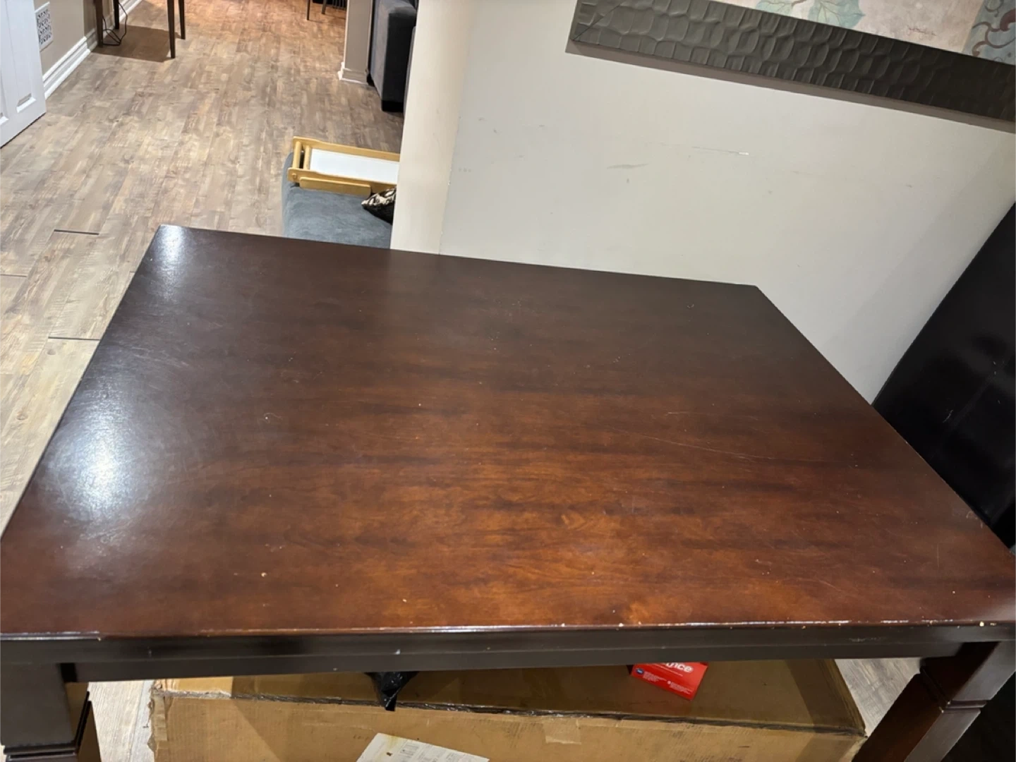 Couple scratches. Selling a sturdy wooden dining table, perfect for family meals or gatherings