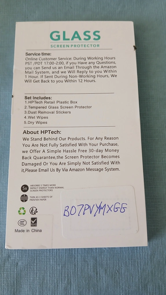 New mobile phone screen protector. Premium tempered glass. Scratch resistant, zero bubble, ultra-clear. Includes screen protector, dust removal stickers, wet and dry wipes.