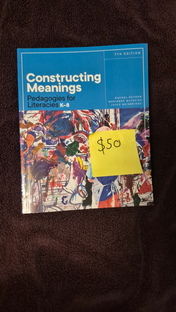Selling the 7th edition of "Constructing Meanings: Pedagogies for Literacies K-8" by Rachel Heydon, Marianne McTavish, and Joyce Bainbridge. It's in great shape!