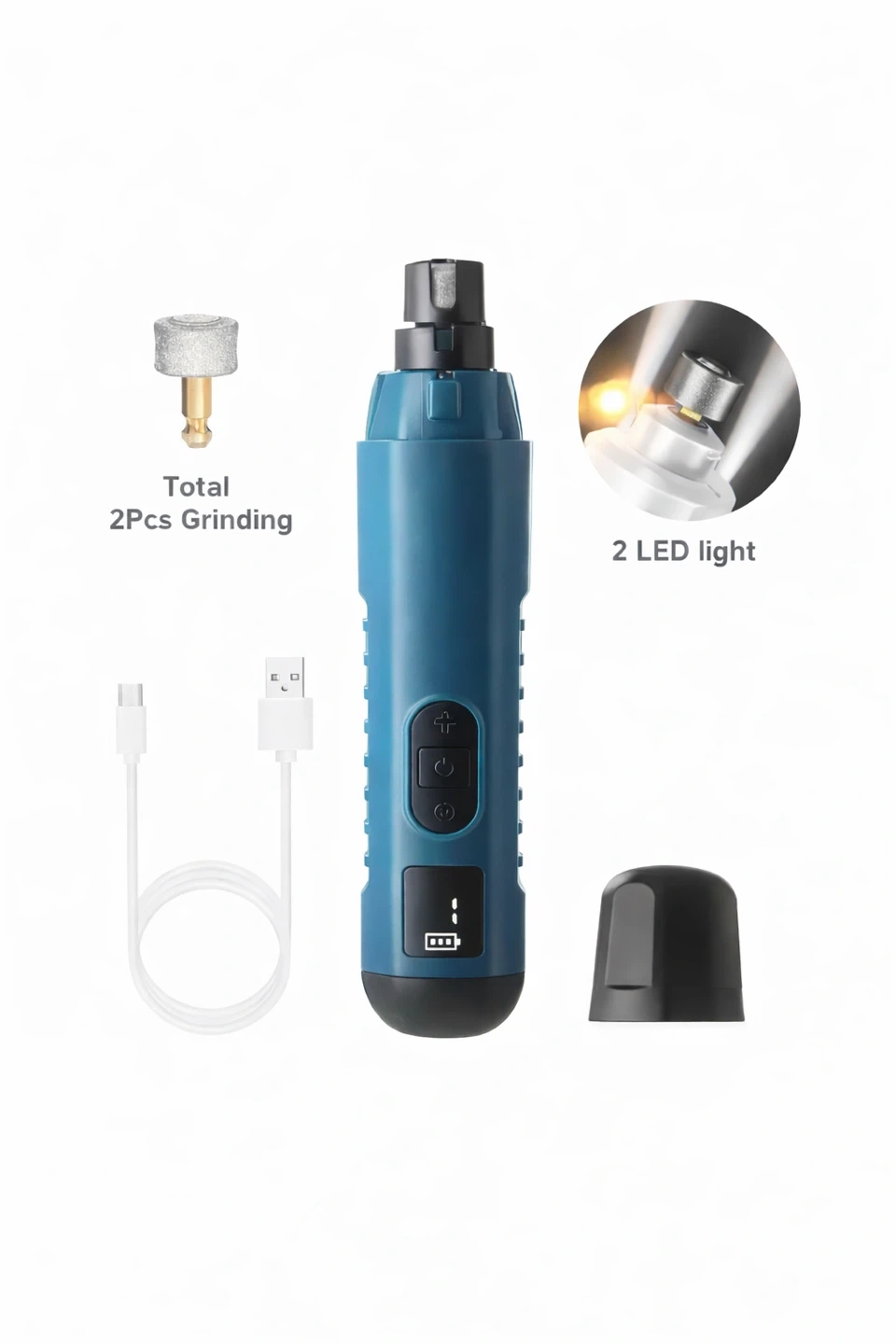 This blue pet nail grinder features low noise and 5 speeds for efficient grooming. It's USB rechargeable and includes 2 LED lights. The shell is made of durable ABS material.