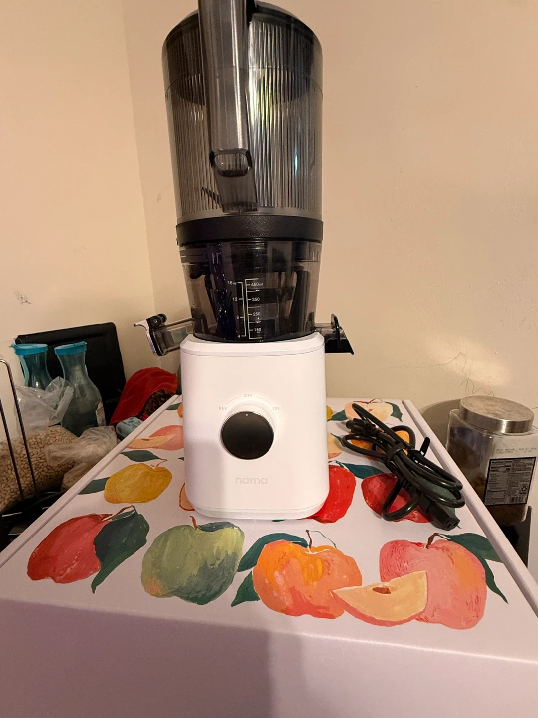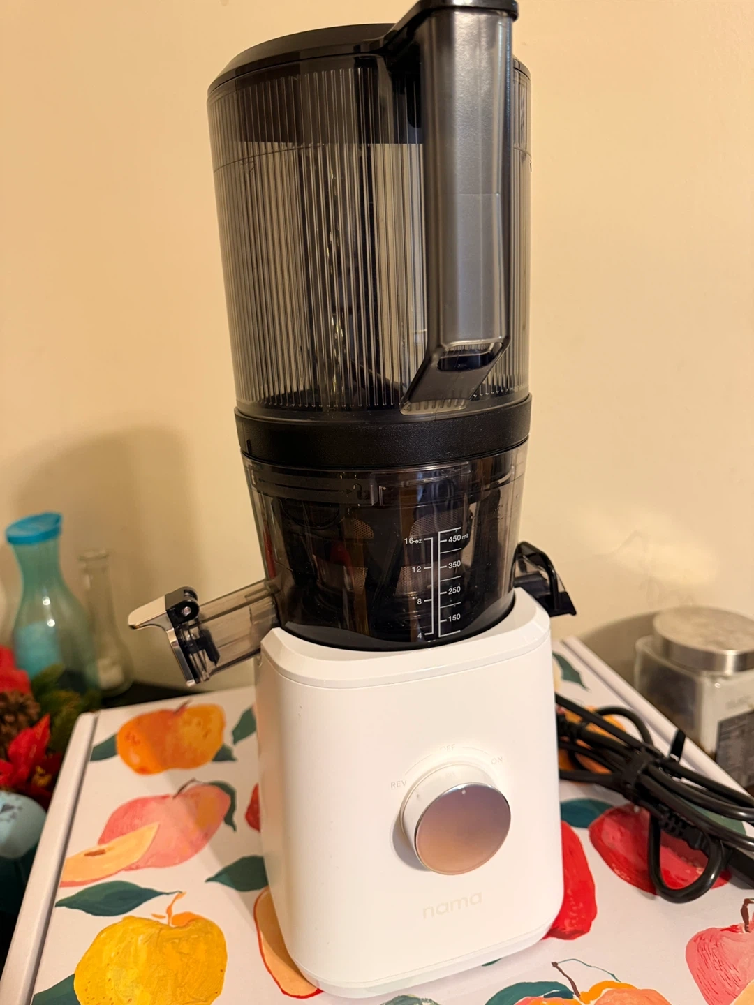 Selling a Nama J2 Cold Press Juicer! It comes with the box. This juicer is perfect for making healthy and delicious juices at home. It's in great condition and ready to use. No cup comes with.