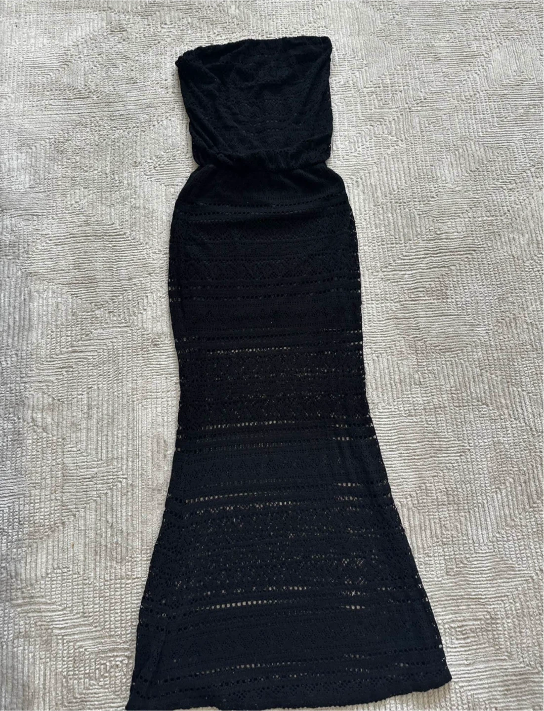 S-twelve Black Crochet Strapless Maxi Dress
