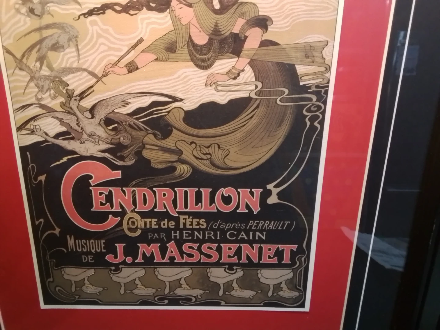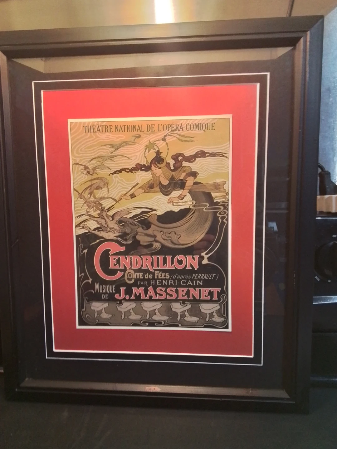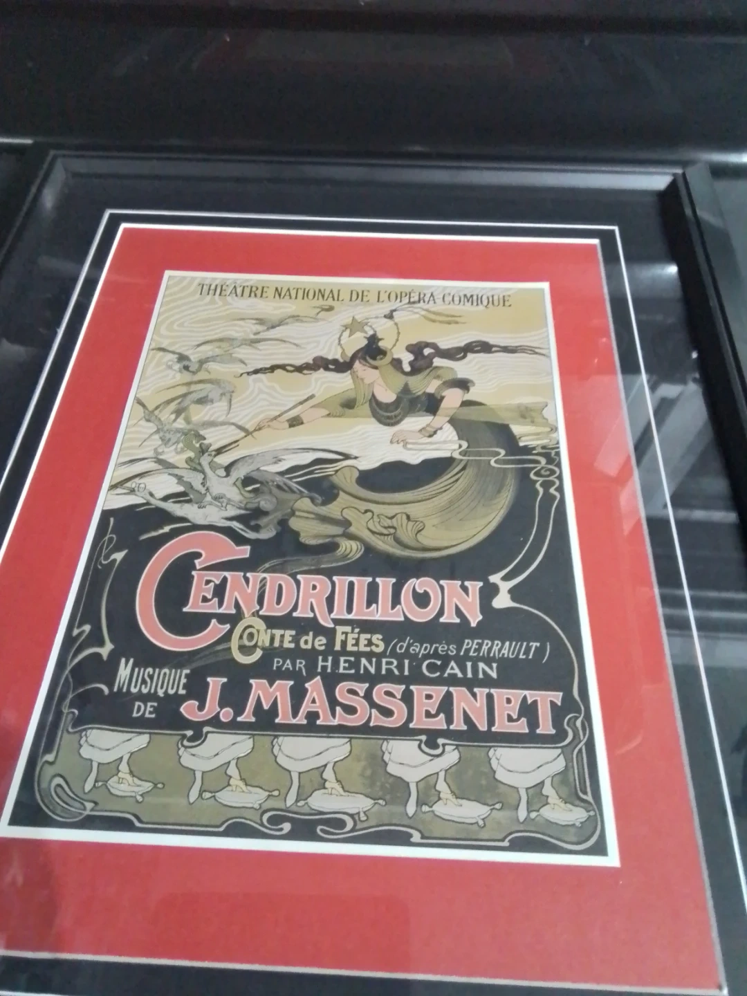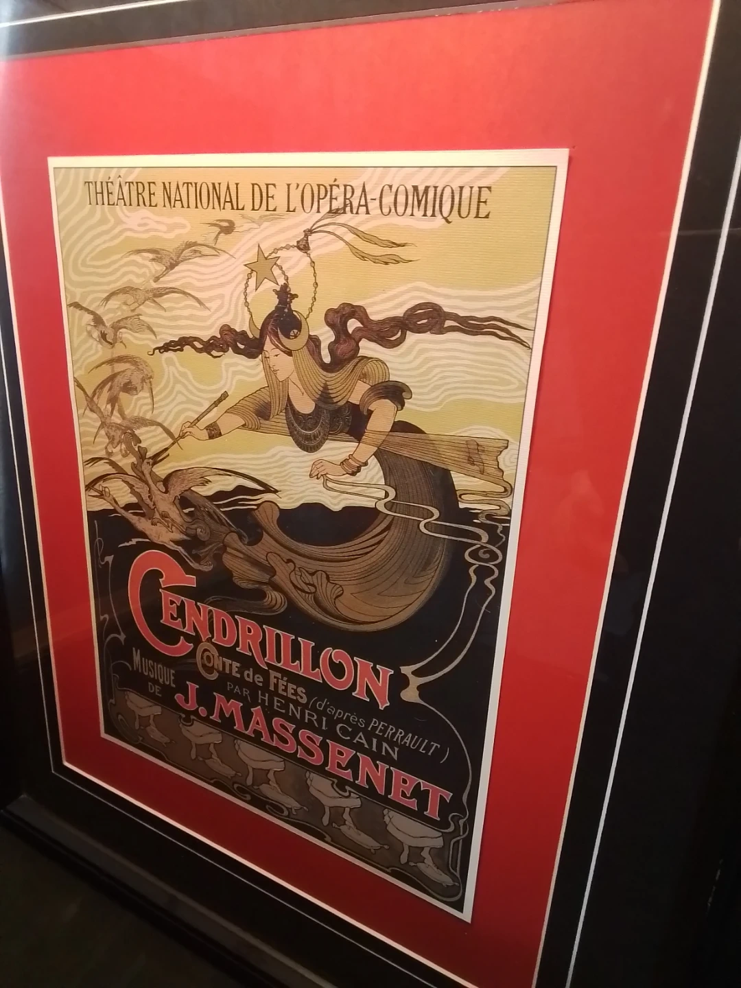This framed Cendrillon Opera poster measures 18x21 inches and showcases the Théâtre National de l'Opéra-Comique's rendition of Cendrillon, featuring music by J. Massenet. The poster is in excellent condition, preserving the charm of the era. It's a lovely piece for collectors or anyone looking to add a touch of classical art to their space.