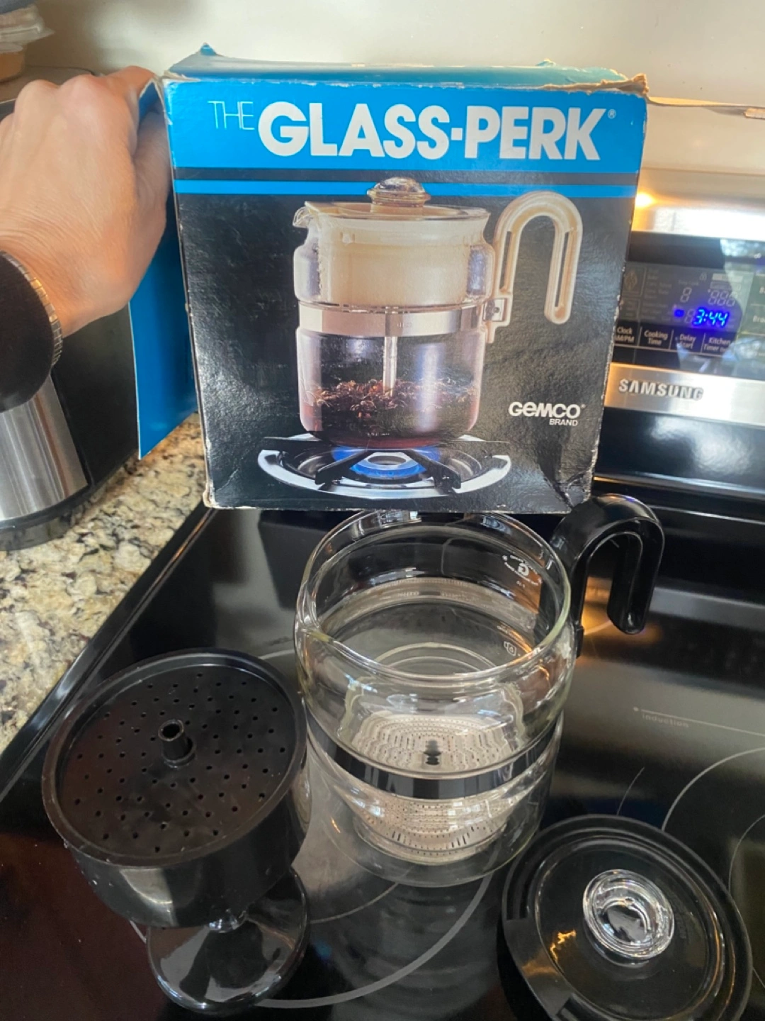 Vintage Gemco Glass-Perk coffee maker. Includes all parts. Complete with original box. Glass carafe and parts. One is new and the other has been used couple times. Price is for each pot . New one is 60.00 used is 50.00 . Pick up Port Elmsley