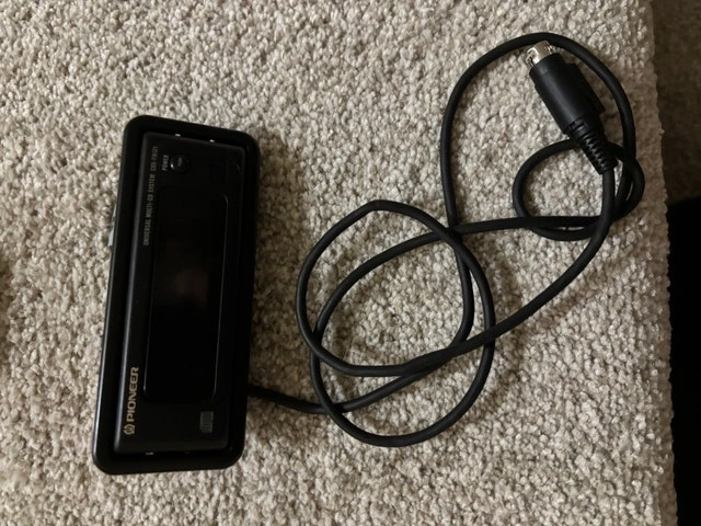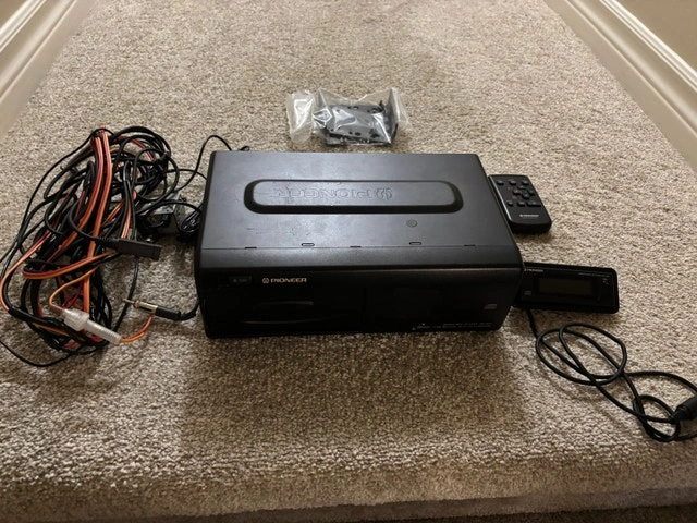 Get ready to groove with this vintage Pioneer CDX-P1280 12-disc CD player! This unit comes with everything you see here: the player itself, display, remote, and all the necessary wiring. It has been previously loved, showing some signs of light wear but it's ready to bring some old-school charm to your car. Key Features: 12-Disc Capacity, Remote Control Included, Wiring Harness, Mounting bracket. Bring back the days of road trip mixes!