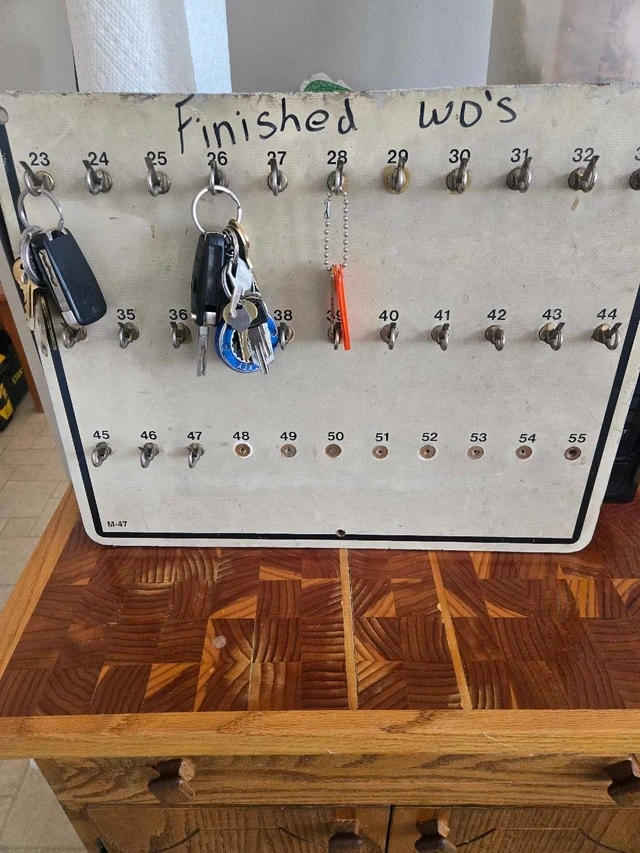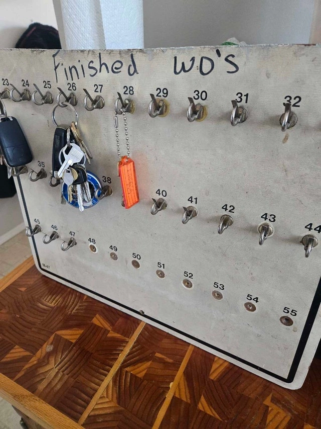 Buy & SellKey RackKey Rack$25Got a lot of keys for vehicles and no proper place to put them. Here's a key rack from an old dealership. It has 26 hooks for all your keys to hang.WHERE TO MEETCheck LocationView MapSELLER971606Prince Albert100 reviews0 chats·0 favorites·3 viewsSEND CHAT TO SELLERHi 971606! I’m interested in your listing.Hi 971606! I’m interested in your listing.Get the Karrot app to chatSign In to chat