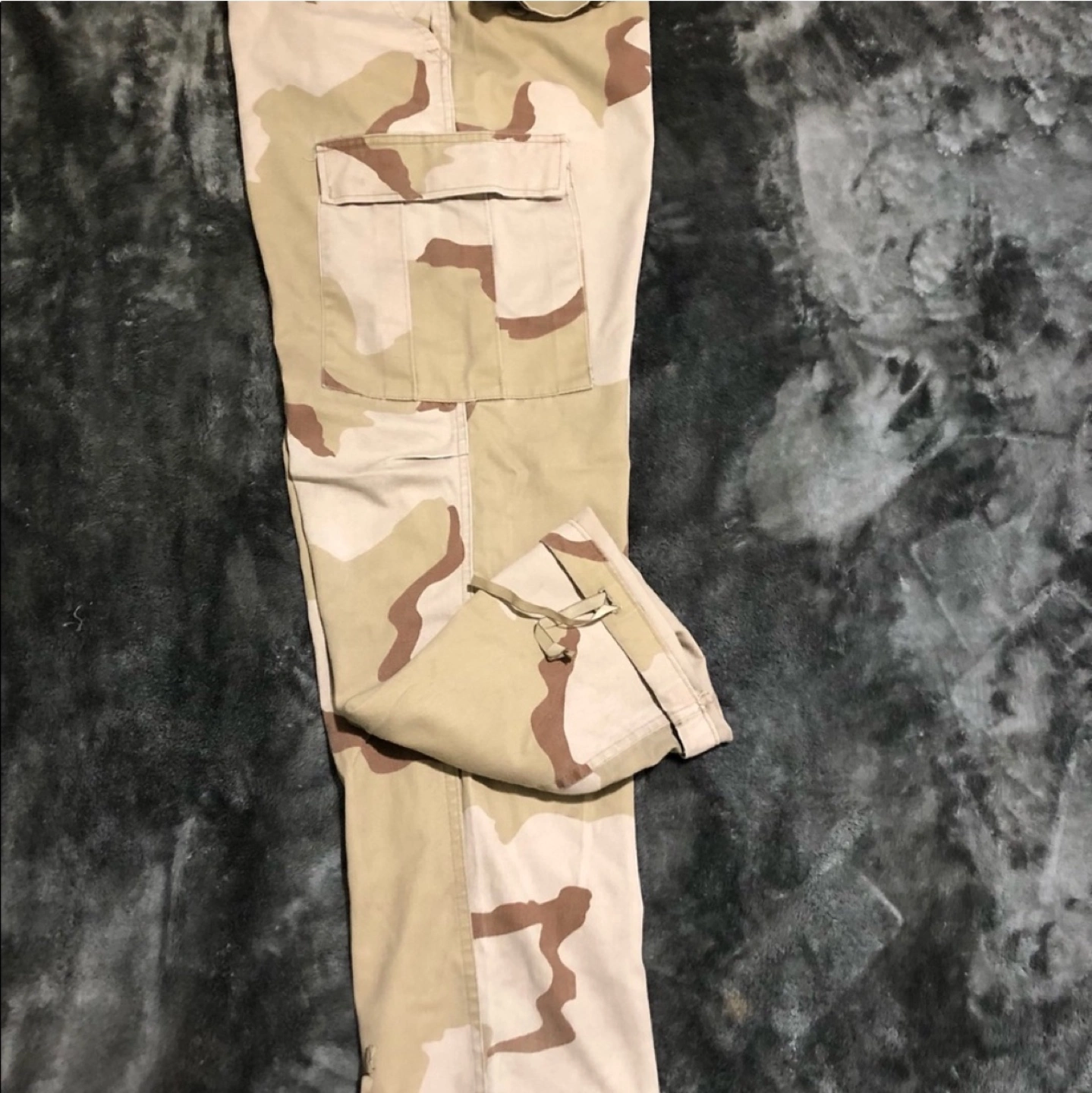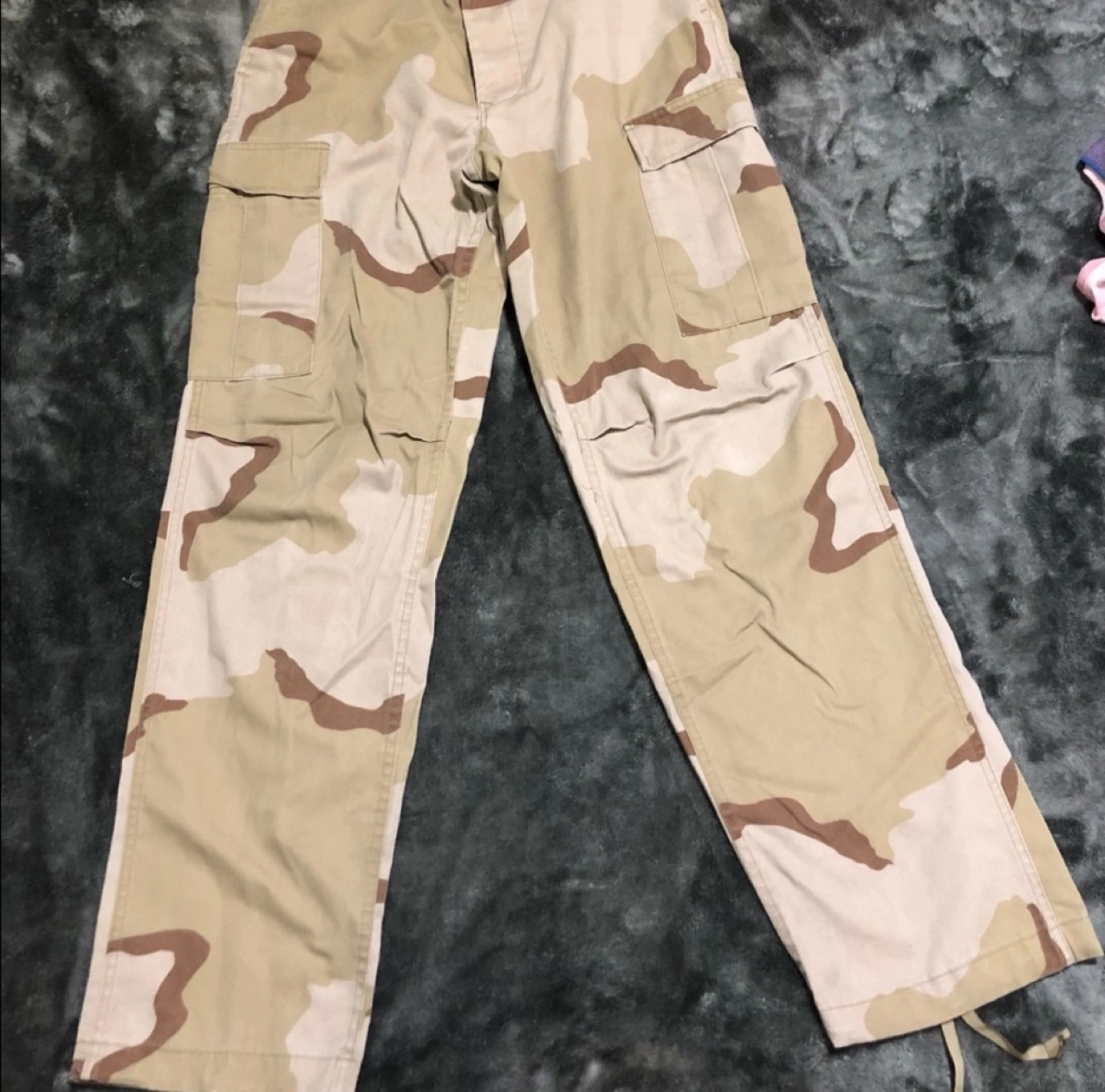 Trousers Combat Pants. Camouflage cargo pants. Multiple pockets. Button and zipper closure. Drawstring cuffs.