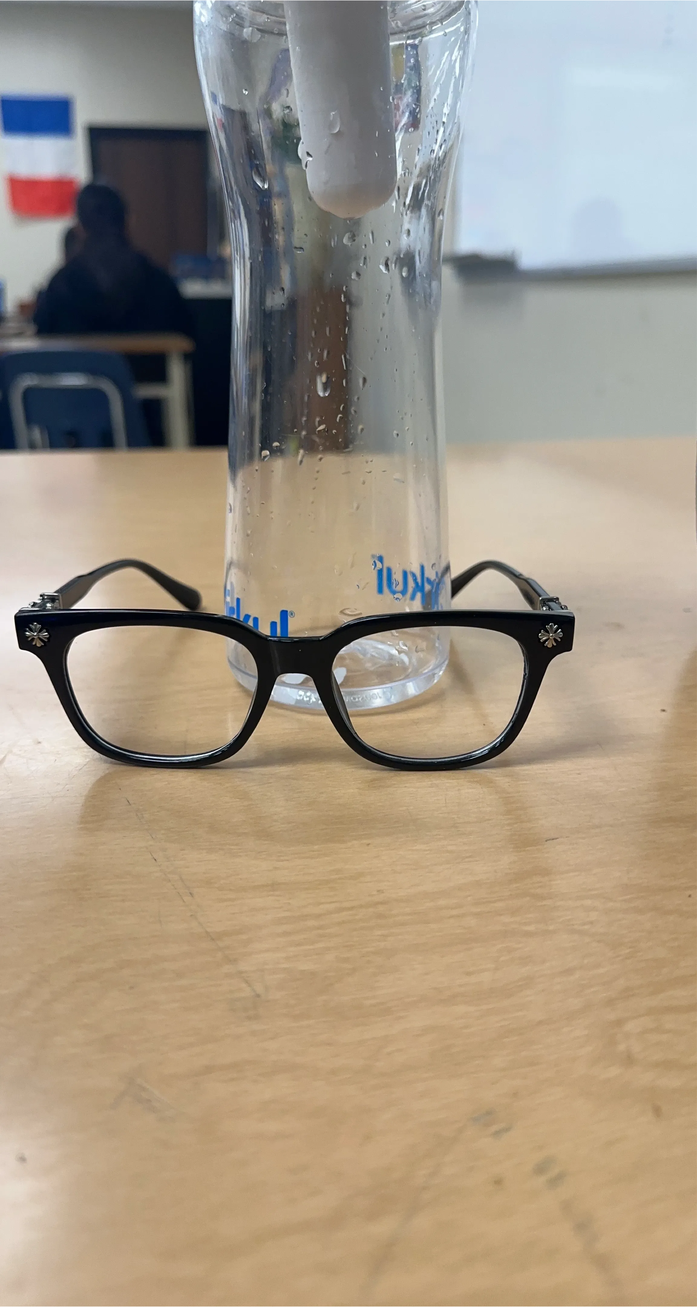 Black frame eyeglasses. Iconic cross motif on the temples. Prescription lenses included. Great for everyday wear!
