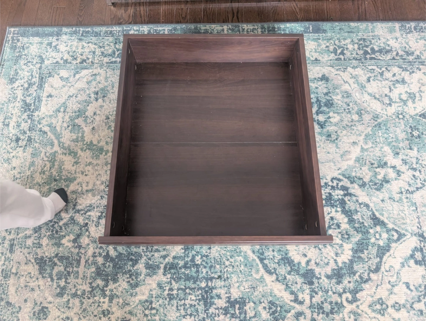 Set of three under-bed storage drawers. Brown colour. Excellent for storing extra blankets, clothing, or other items. Dimensions provided in image.