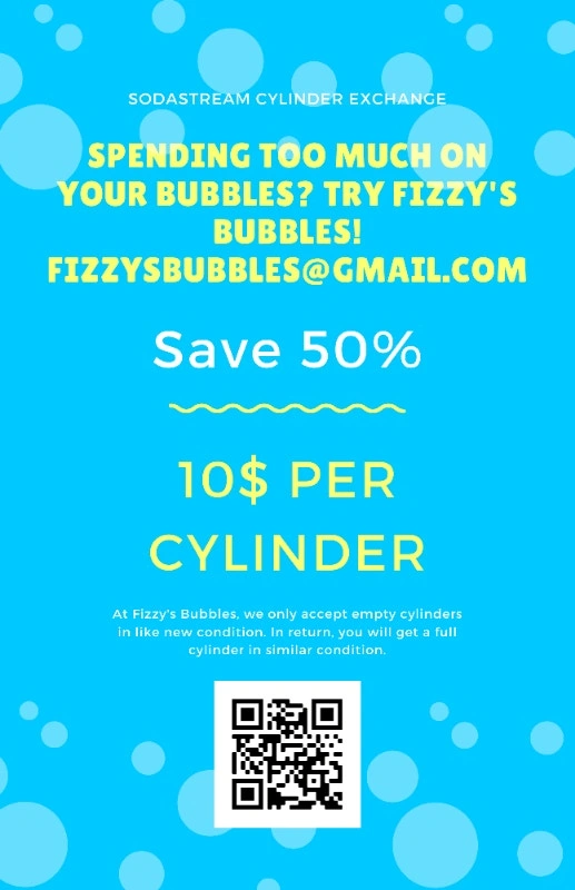 Offering Sodastream cylinder exchanges and CO2 refills. I also have a limited number of free cylinders available with a $25 refundable deposit. The CO2 refill is $10. You can keep the cylinder or return it in good condition for your deposit back. If the ad is up, this is available. I'm located in Holland Landing.
