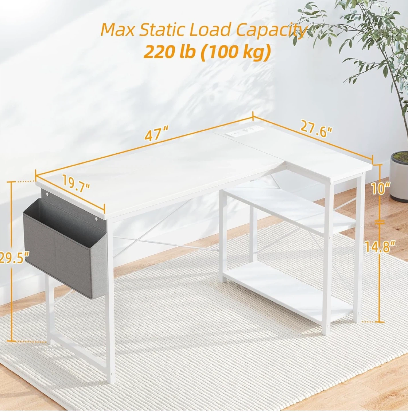 Computer Desk with Power Outlets, 47 Inch L Shaped Desk with Reversible Shelves, Gaming Desk Corner Desk Study Work Desk for Home Office Bedroom Small Space, White. The desk is in good condition and ready for a new home!
