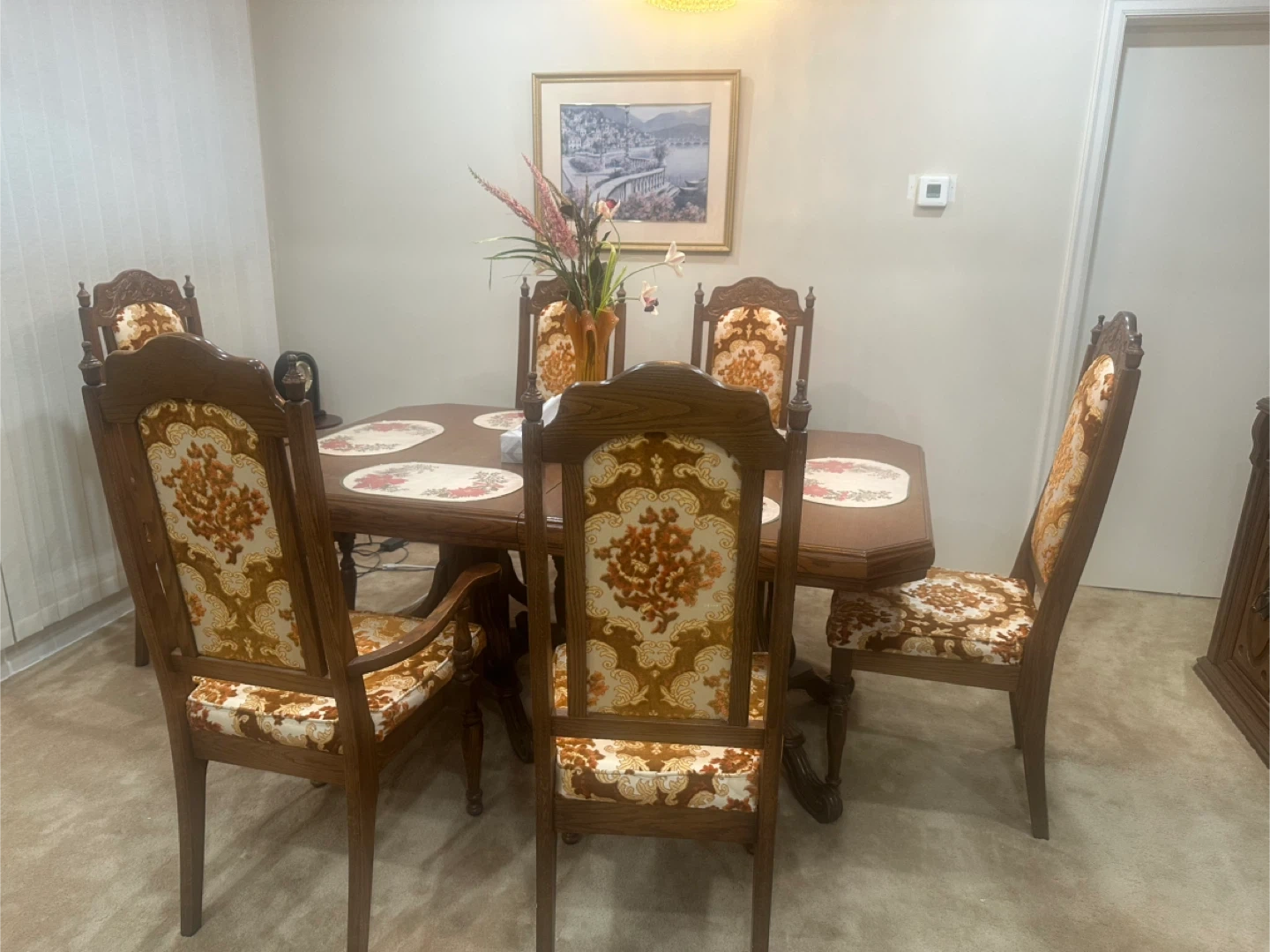 Buy & SellWooden Dining Table with 6 ChairsWooden Dining Table with 6 Chairs$285Classic wooden dining table and six chairs. Features patterned upholstery on the seats and backs.ConditionGoodWHERE TO MEETLawrence and KennedyView MapSELLERlimaDorset Park343 reviews2 chats·1 favorites·114 viewsSEND CHAT TO SELLERHi lima! I’m interested in your listing.Hi lima! I’m interested in your listing.Get the Karrot app to chatSign In to chat