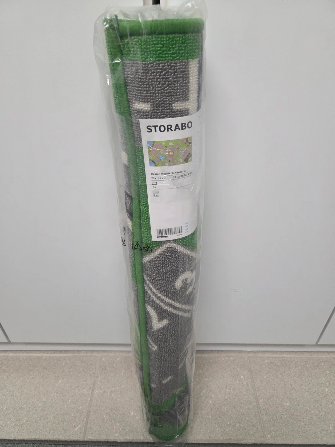 This STORABO play rug features a colourful road and railway design for imaginative play. Measures 200x133 cm.