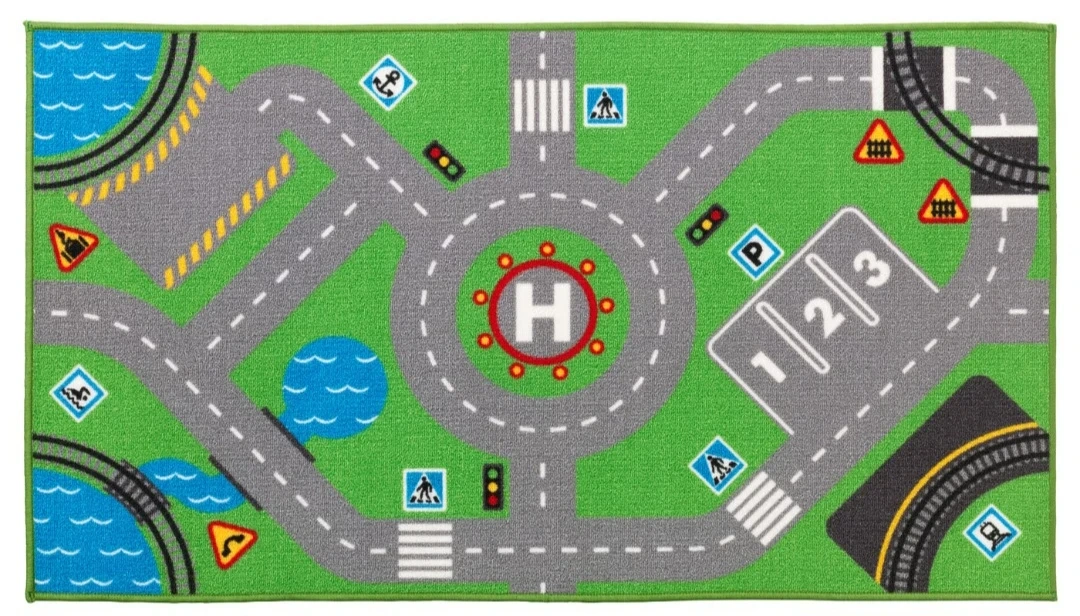 This STORABO play rug features a colourful road and railway design for imaginative play. Measures 200x133 cm.