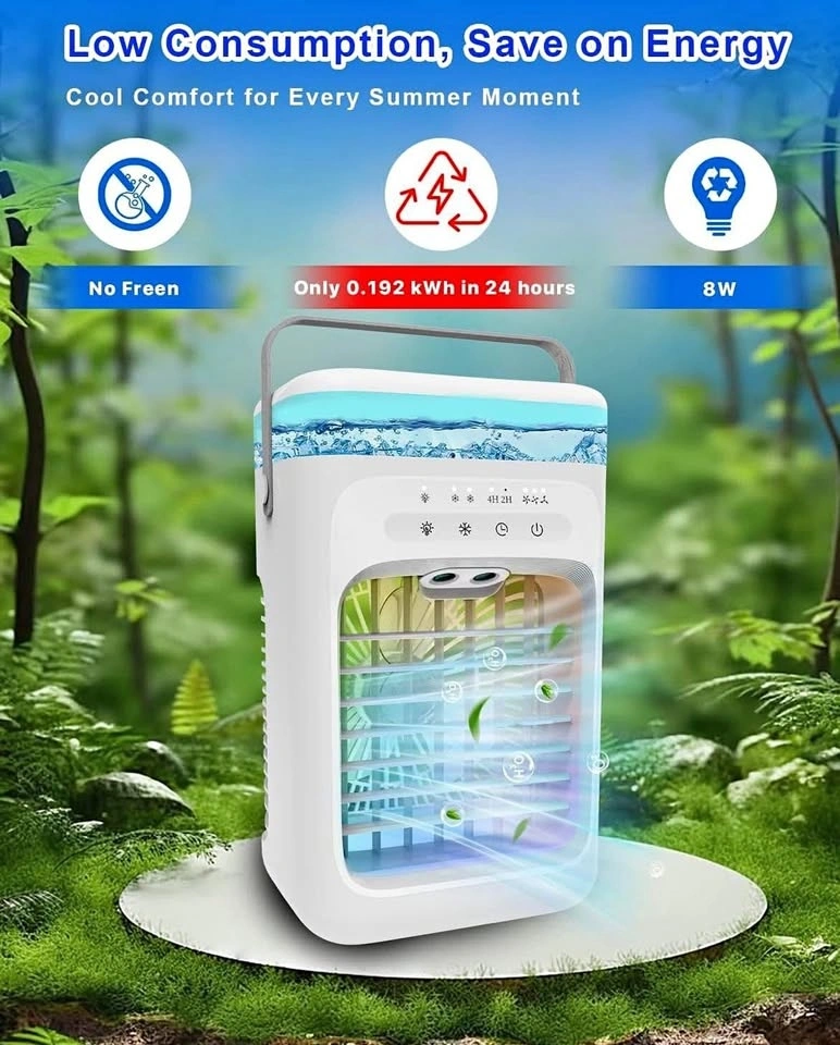 Used 1 time to test. Portable Air Conditioner Cooling Fan, Quiet with 3 Speeds & 2 Mist, 1000ml Evaporative Personal Air Cooler, 7 Night Light & 2-4H Timer, Mini Cooling Fan for Bedroom, Camping, Office. Pick up in Thorncliffe.