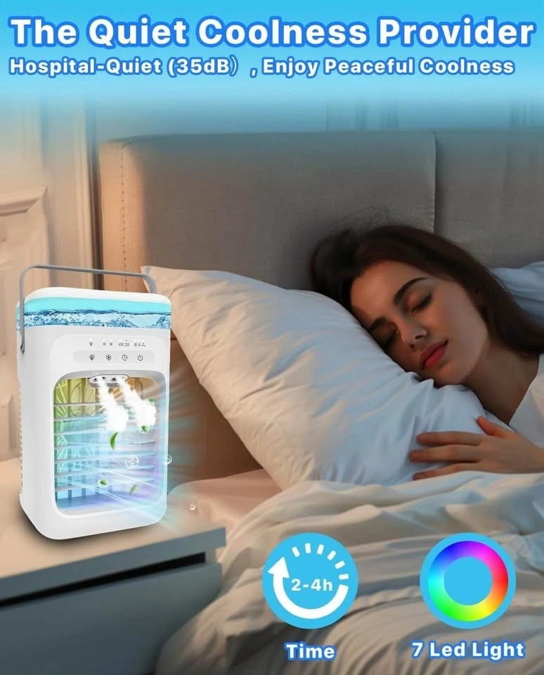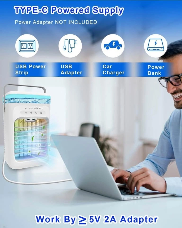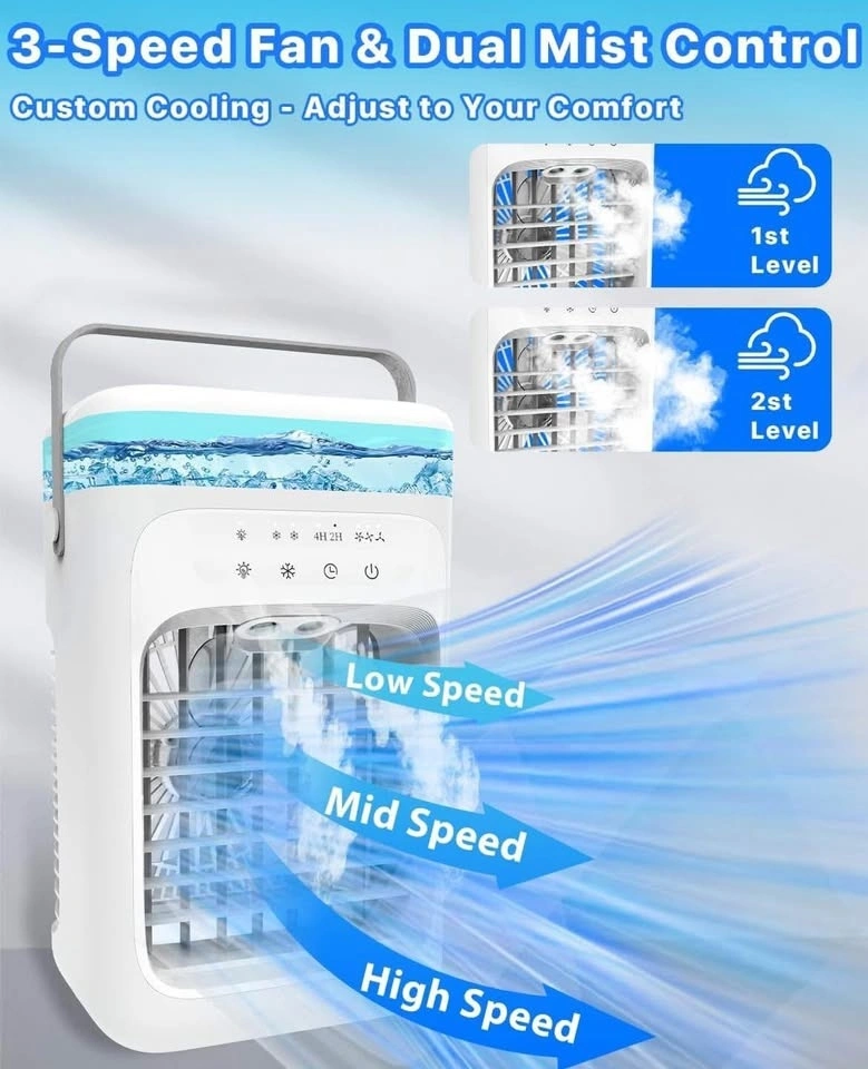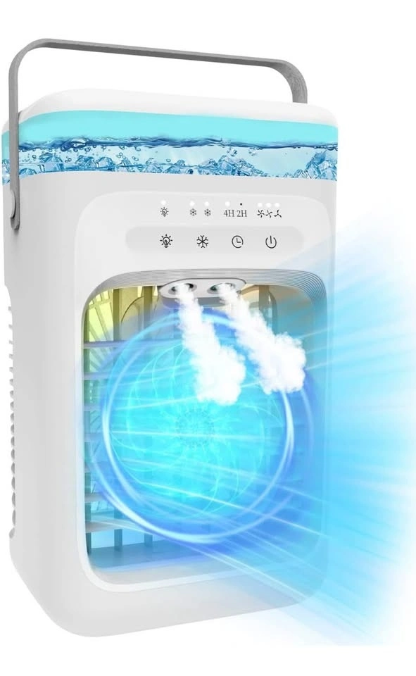 Used 1 time to test. Portable Air Conditioner Cooling Fan, Quiet with 3 Speeds & 2 Mist, 1000ml Evaporative Personal Air Cooler, 7 Night Light & 2-4H Timer, Mini Cooling Fan for Bedroom, Camping, Office. Pick up in Thorncliffe.