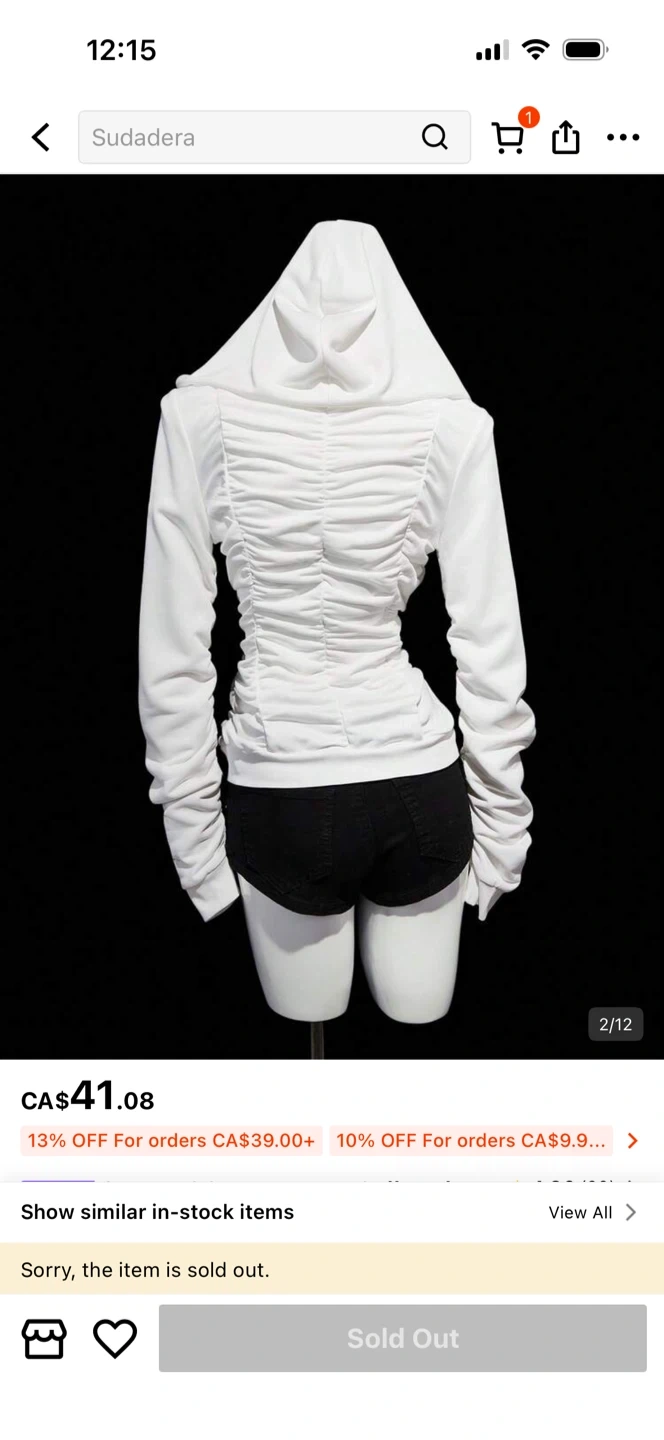 White Ruched Zip-Up Hoodie