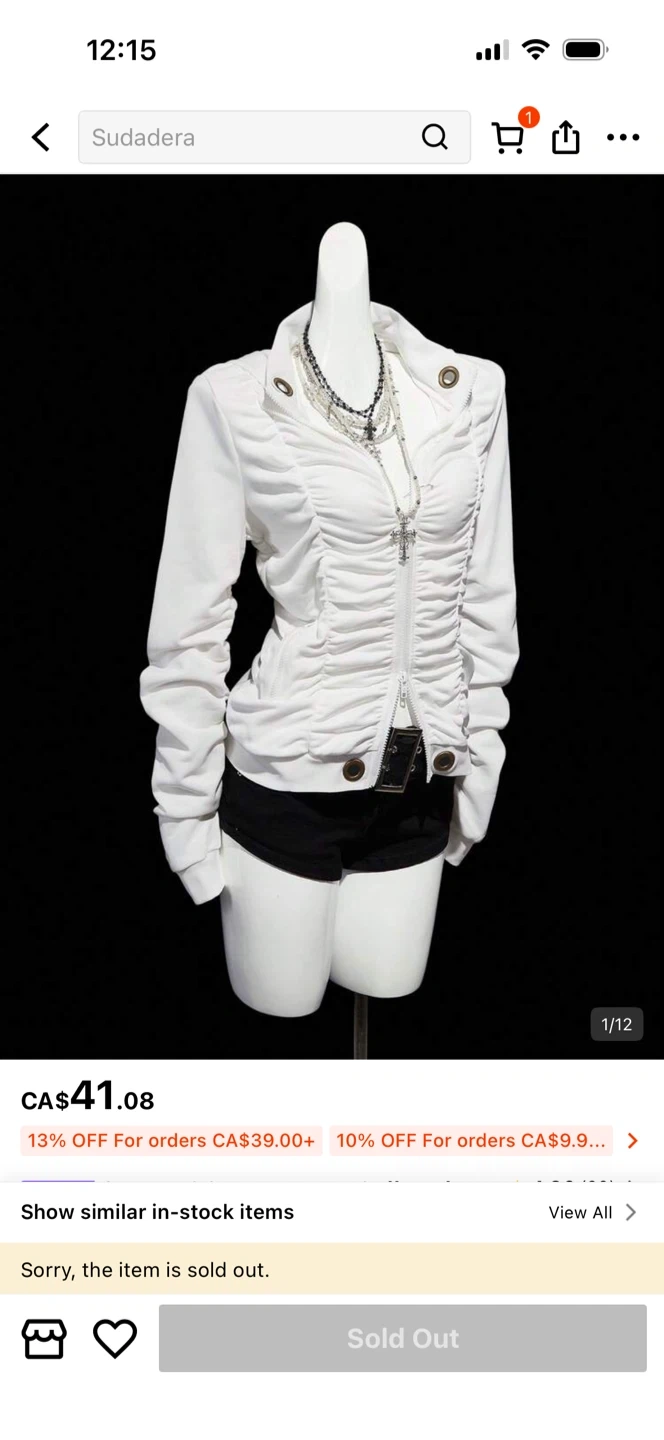 White Ruched Zip-Up Hoodie