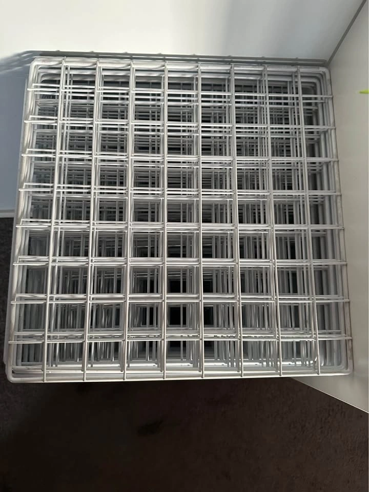 Modular Rubbermaid wire cube storage system. Has 164 metal wire panels and 154 connectors. Use to build cube shelves or custom storage. All pieces sold together. Pickup in Sidney.